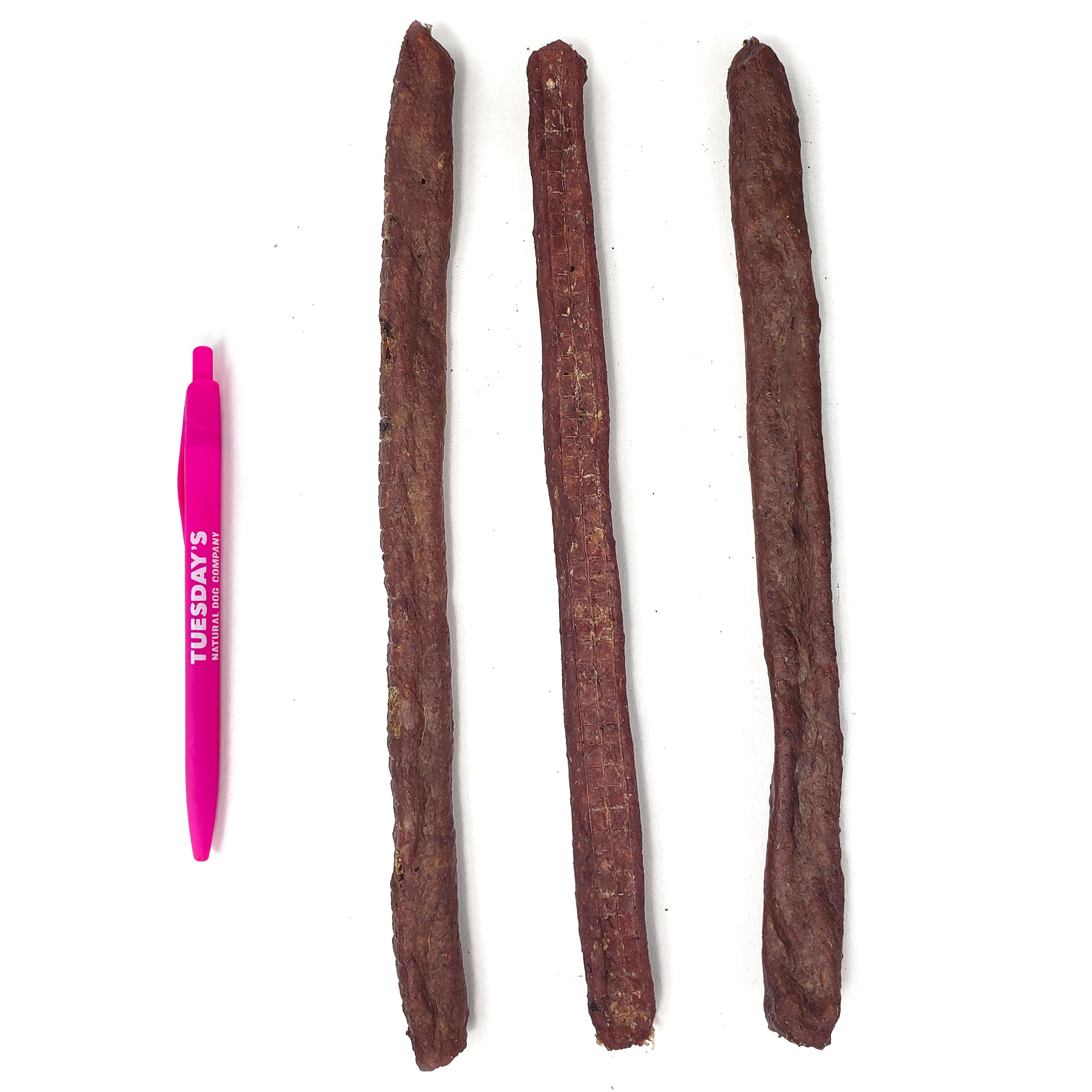 Chew Meter: Medium. The texture is firm to the touch, but crunches easily - it is not as durable as a traditional bully stick.