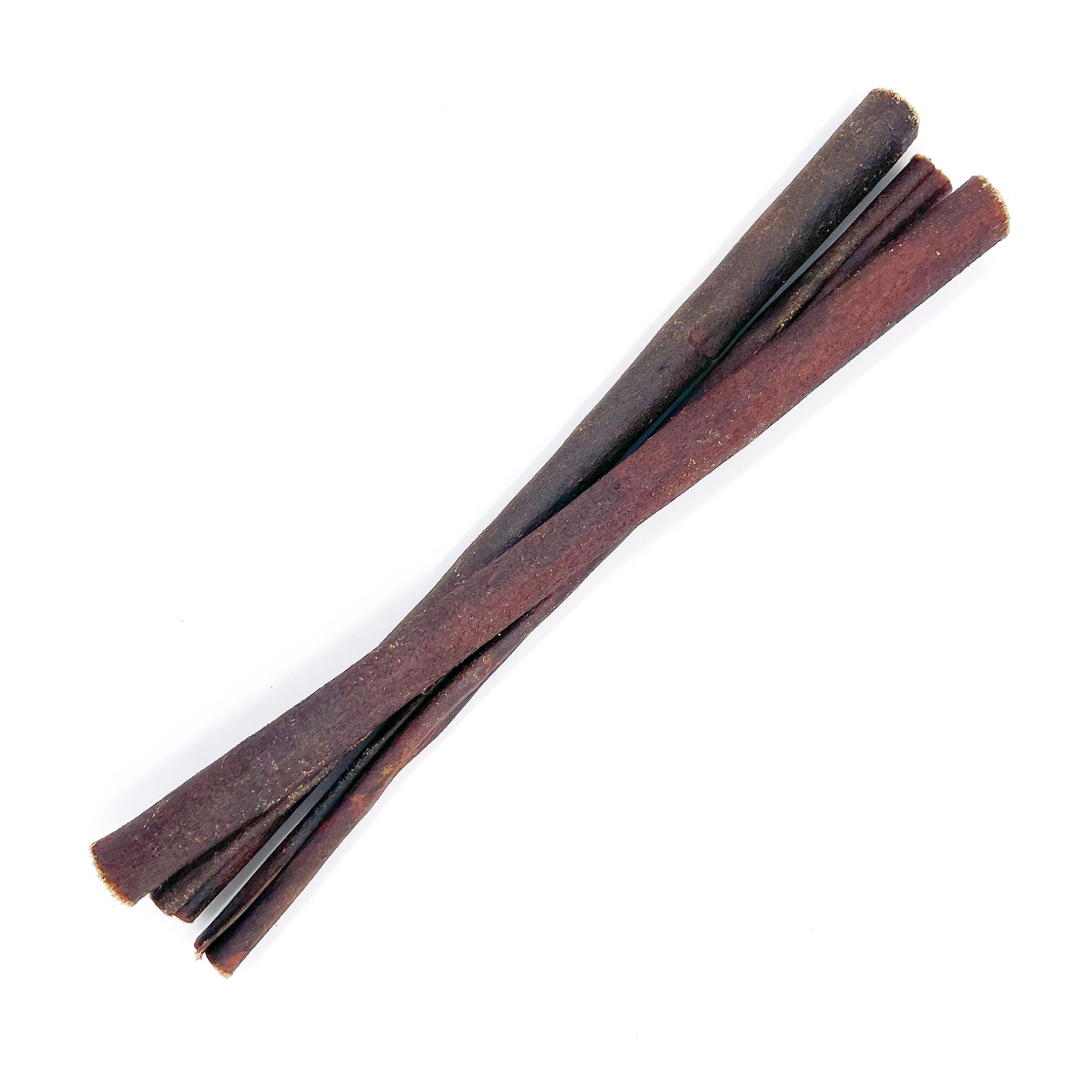Our 12" Collagen Sticks with Peanut Butter are less processed and more easily digestible when compared to traditional dog rawhide chews. These Collagen Sticks are made from a layer of tissue called the dermis, which is nutritious (made of about 98.5% collagen) and has a firm and elastic texture. This value-added Collagen Stick also has an additional basted peanut butter flavored layer, which improves the palatability of the treat.