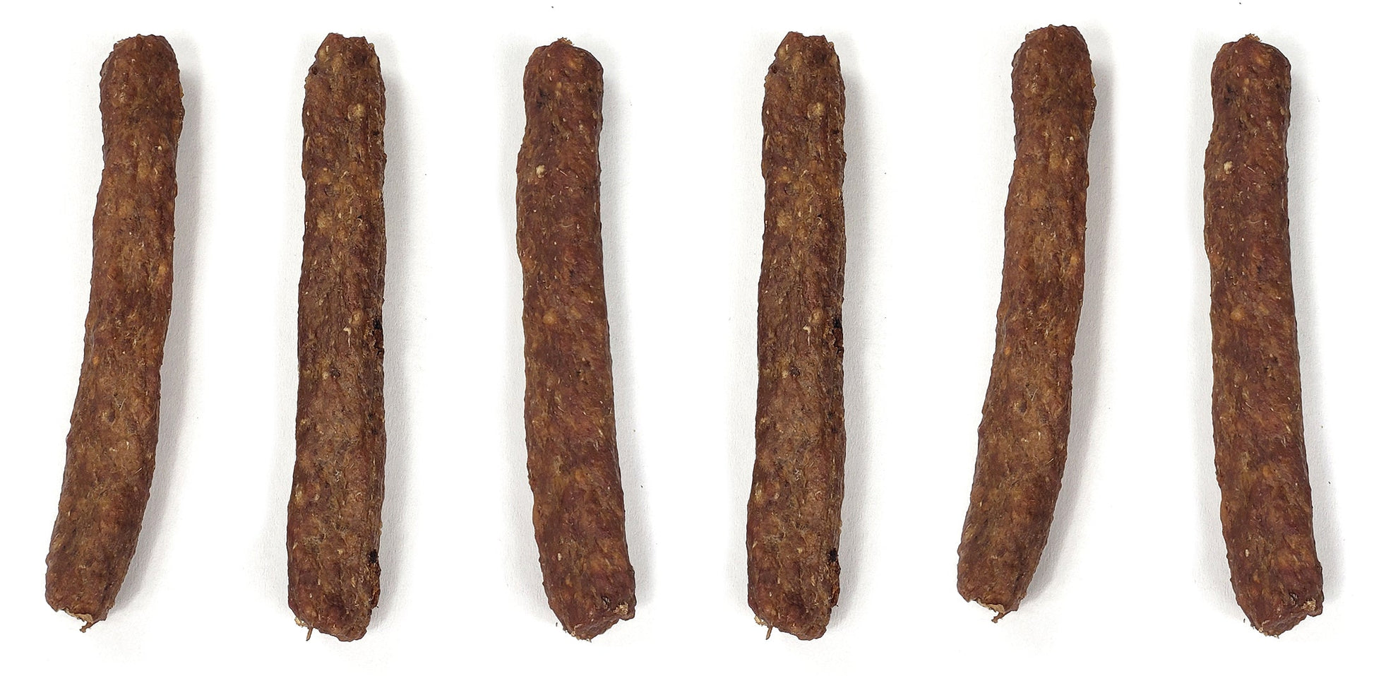 This chew is made up of ground beef, beef skin, and beef pizzle, that has been mixed up and formed into a stick shape and baked.