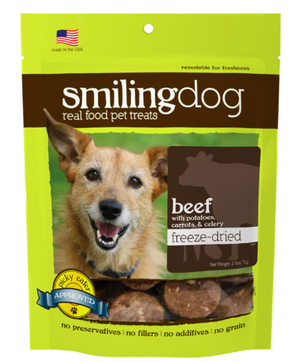 Made with no grain, no fillers, & no artificial preservatives, Smiling Dog treats help dogs live naturally. With 100% USA-sourced ingredients, our treats were developed with the carnivore in mind. Using simple, whole ingredients, you can reward your pup’s good behavior with a treat that’s actually good for him