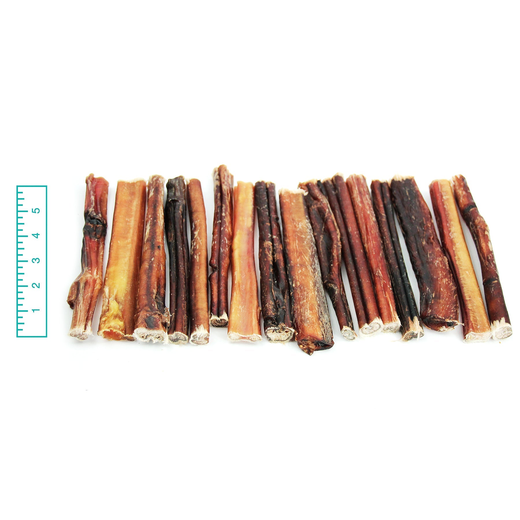 Description: There are 16 ounces of 6" thick bully sticks in this bag. Each piece weighs 25 - 39 g.