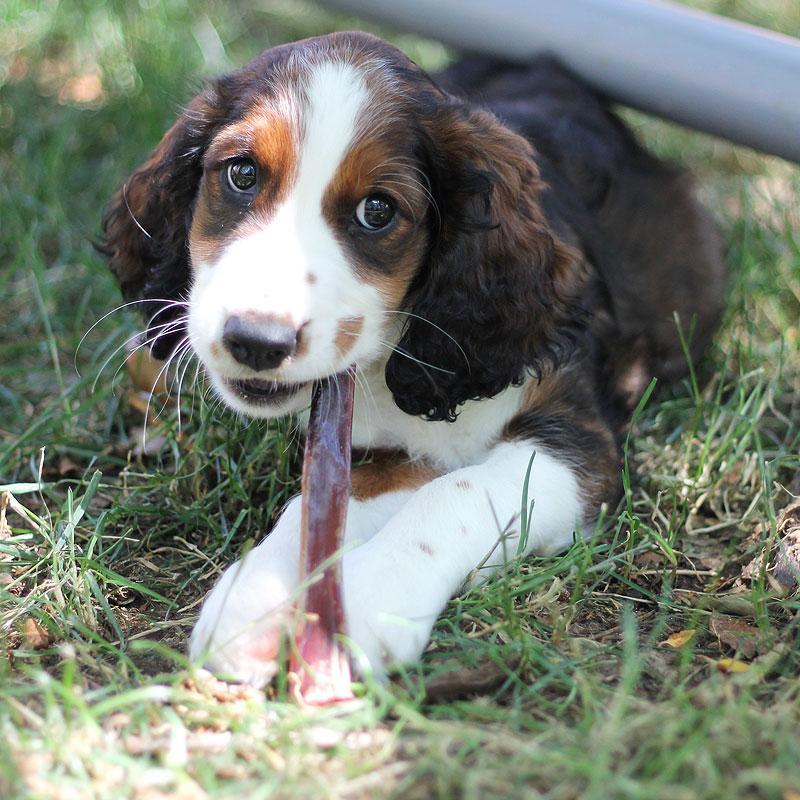 This high-protein chew is a great option for those toy breed dogs or small puppies! This chew is soft enough that you can break it in half with your bare hands, so it's appropriate for dogs who are missing a couple of teeth.