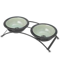 Choose from two diferent sized sets to customize your pets' needs. Each set includes two dishwasher safe stoneware bowls