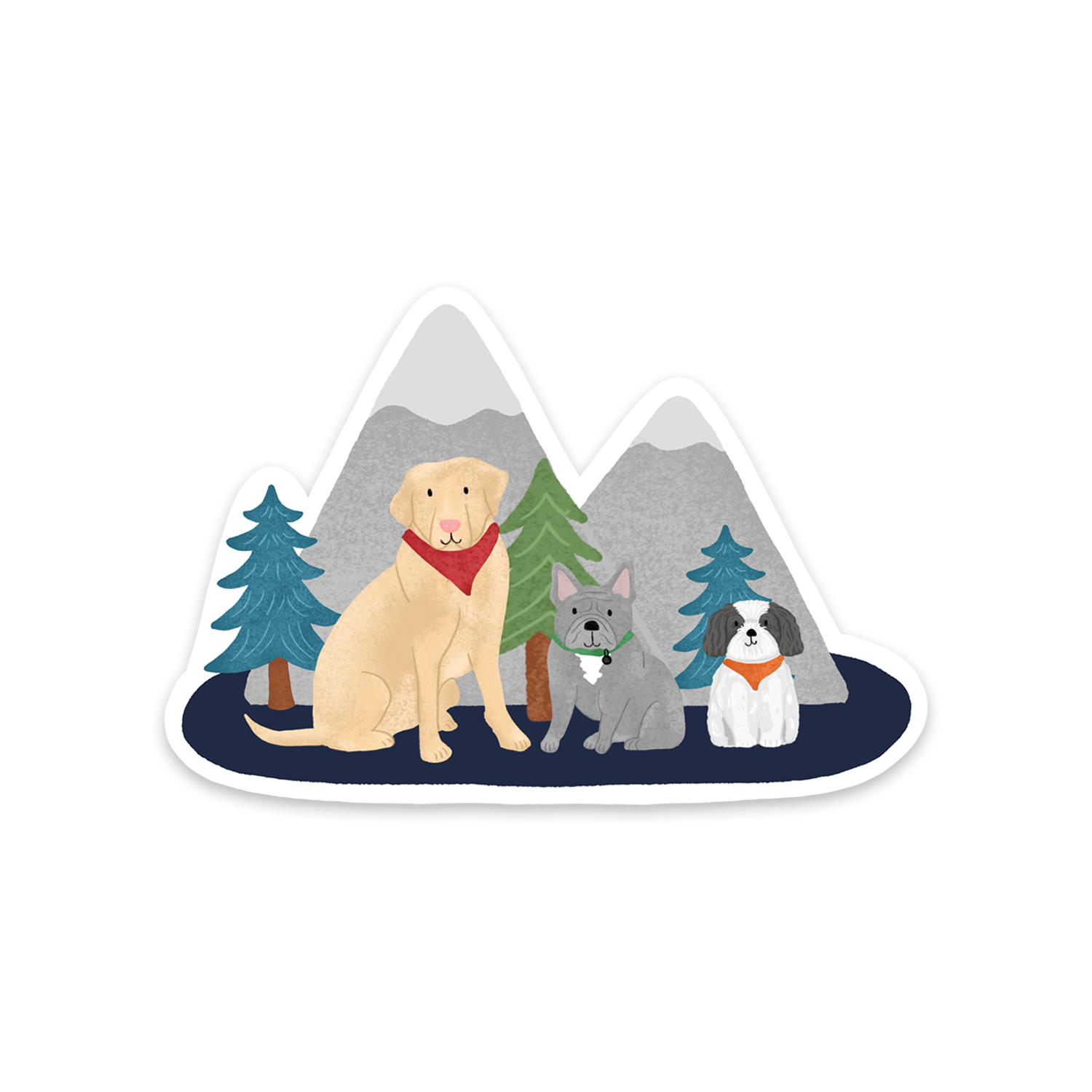 This cute sticker features a trio of pups ready for a trip to the mountains!