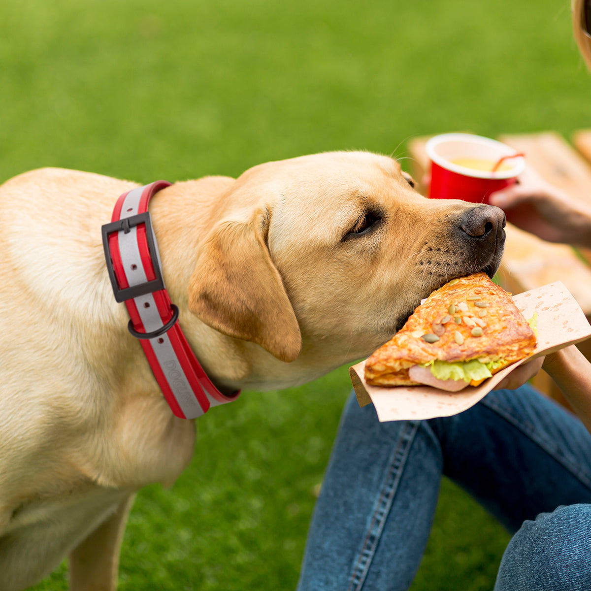 - FREE YOUR DOG to romp in puddles and retrieve from lakes with the Dogline Translucent Biothane Reflective Waterproof Dog Collar. This water-repellent collar stays dry and odor-free, without shrinking or losing flexibility.