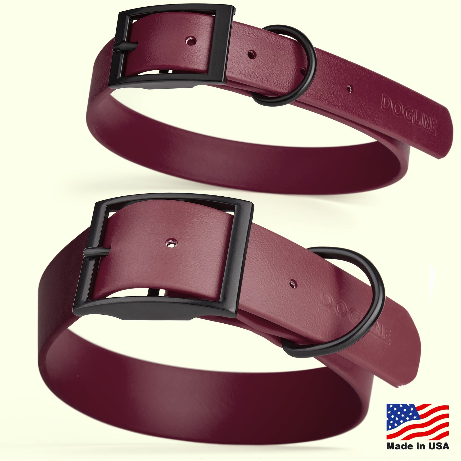 Designed for easy care and reliability, a waterproof coating enhances the polyester webbing substrate of our waterproof dog collar, creating a 500-lb break strength per quarter-inch of width. Even if your big dog strains at his leash during walks, this robust collar won't break under normal use. Complete with electroplated black hardware, it's the collar of choice for working canines of law enforcement and military units. A metal D-ring makes our collars compatible with our Biothane leashes.