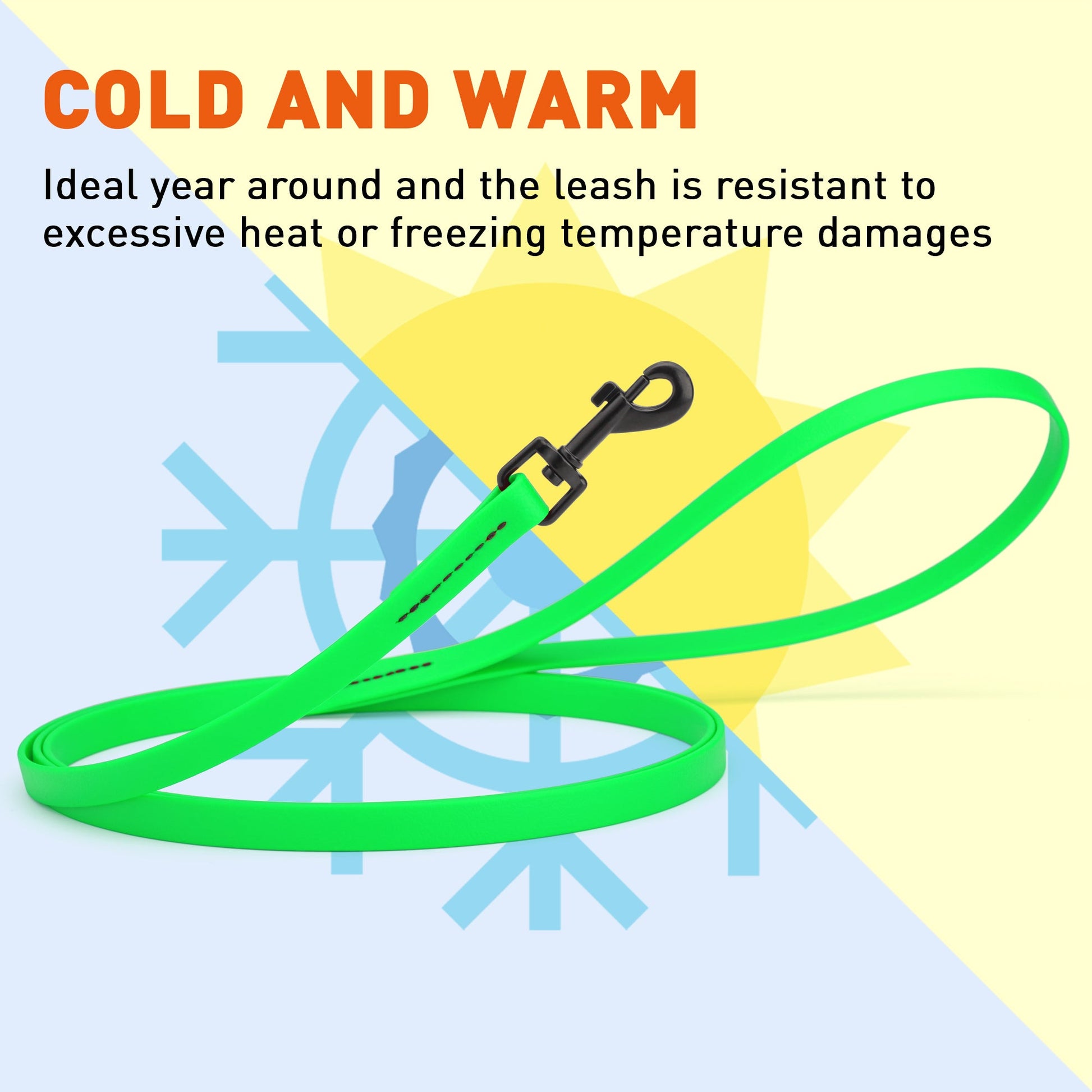 - MORE DURABLE than leather Leashes, the Biothane dog leash boasts a flexible substrate core bonded with a waterproof coating, perfect for environs where strength and cleanliness are crucial.