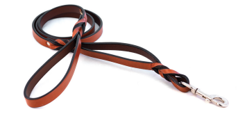 BRAIDED LEATHER LEASH - TWO HANDLES w BEVELED and PAINTED FINISHED EDGES