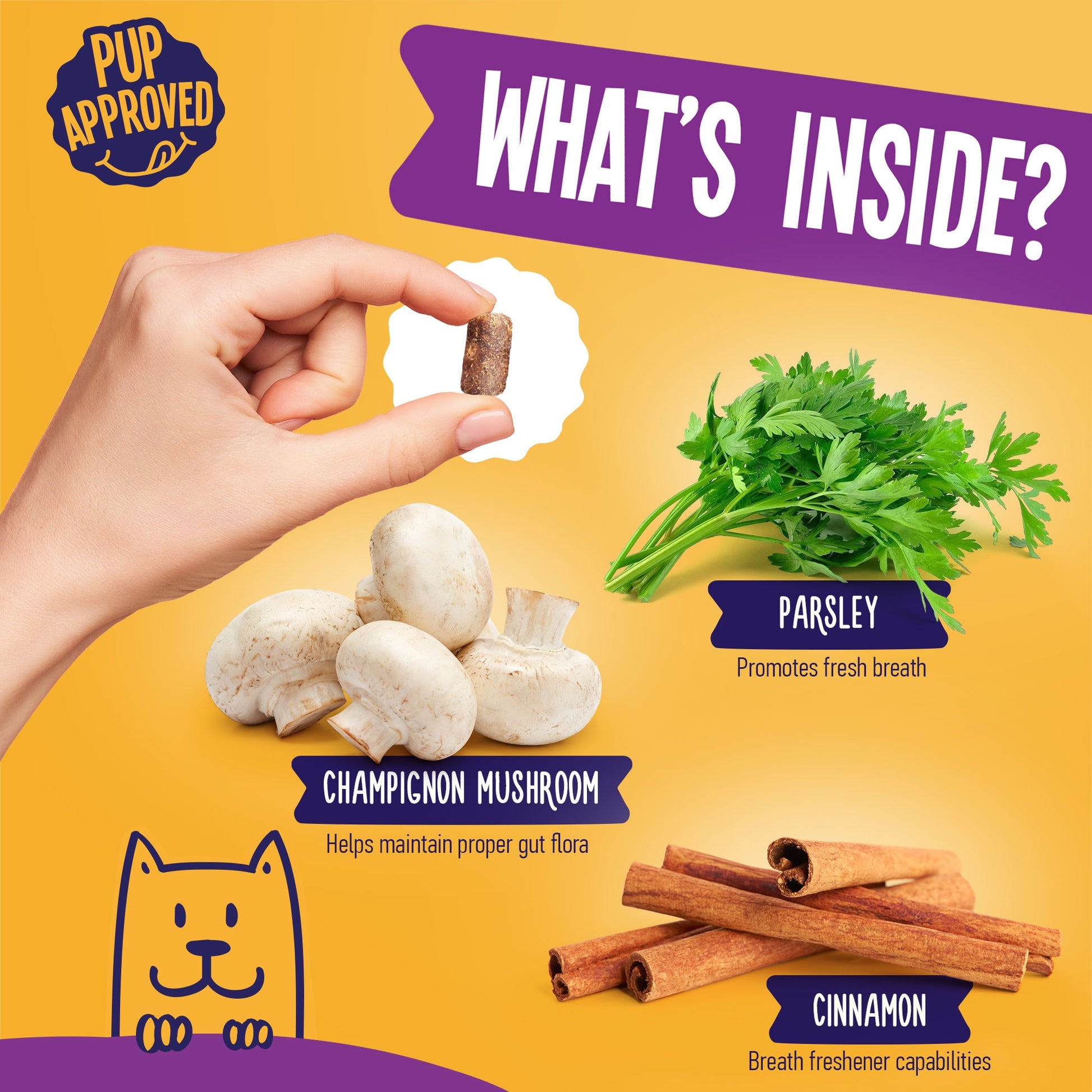 Bacon or Chicken Flavored Breath Aid Supplements for Dogs – Fresh Breath for Your Furry Friend