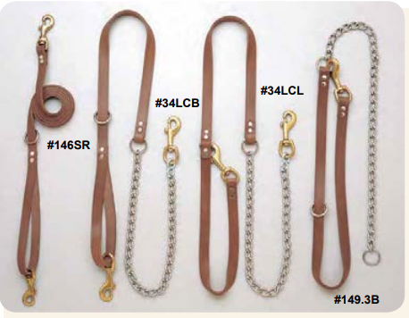 The Bully™ Tree Leads can be snapped around various size trees or posts. All feature Brass Bolt Snaps. The combination leads feature 32” of Leather and 24” of Chain.
