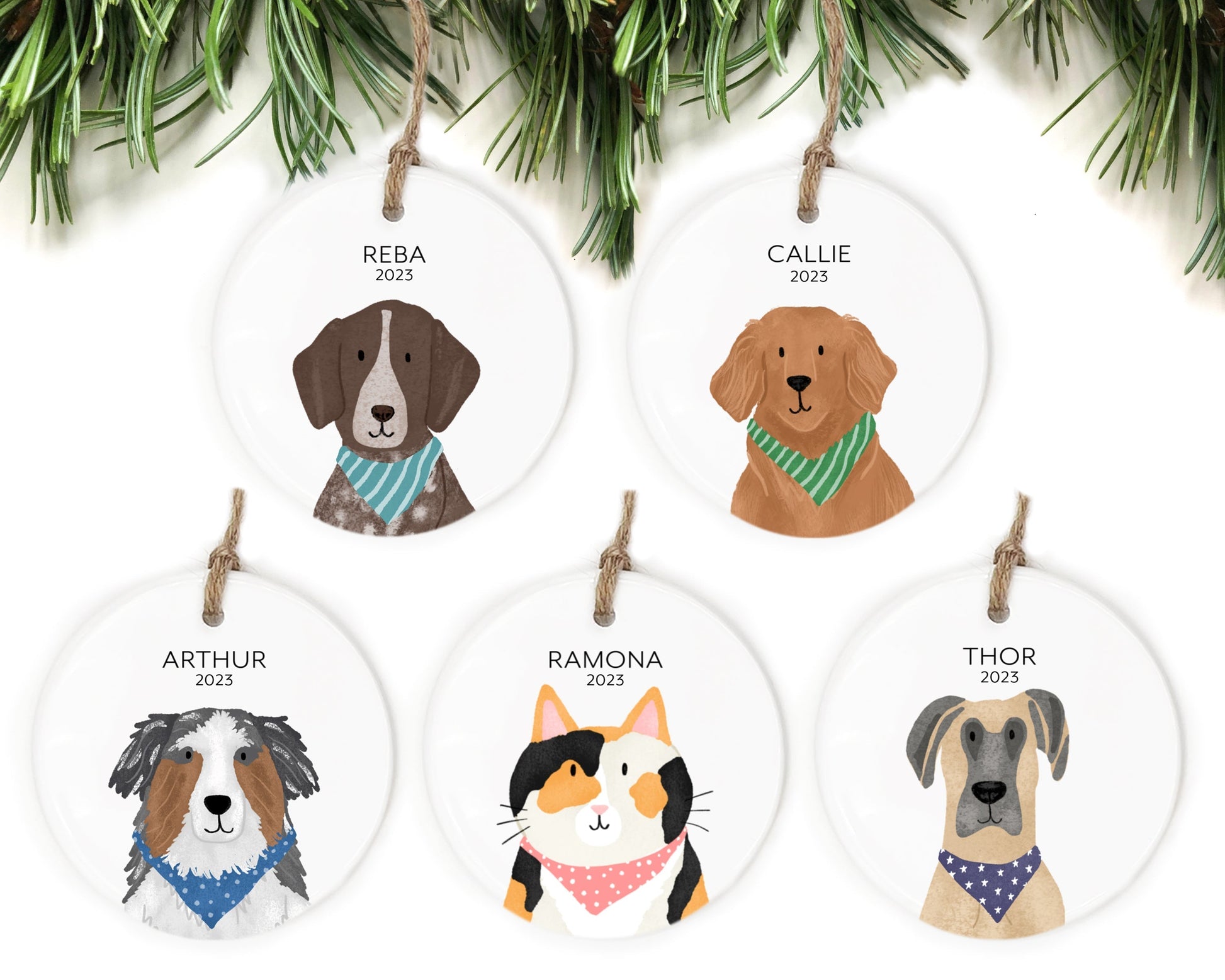 - Your ornament can be customized with your pet's name and the year if you'd like.