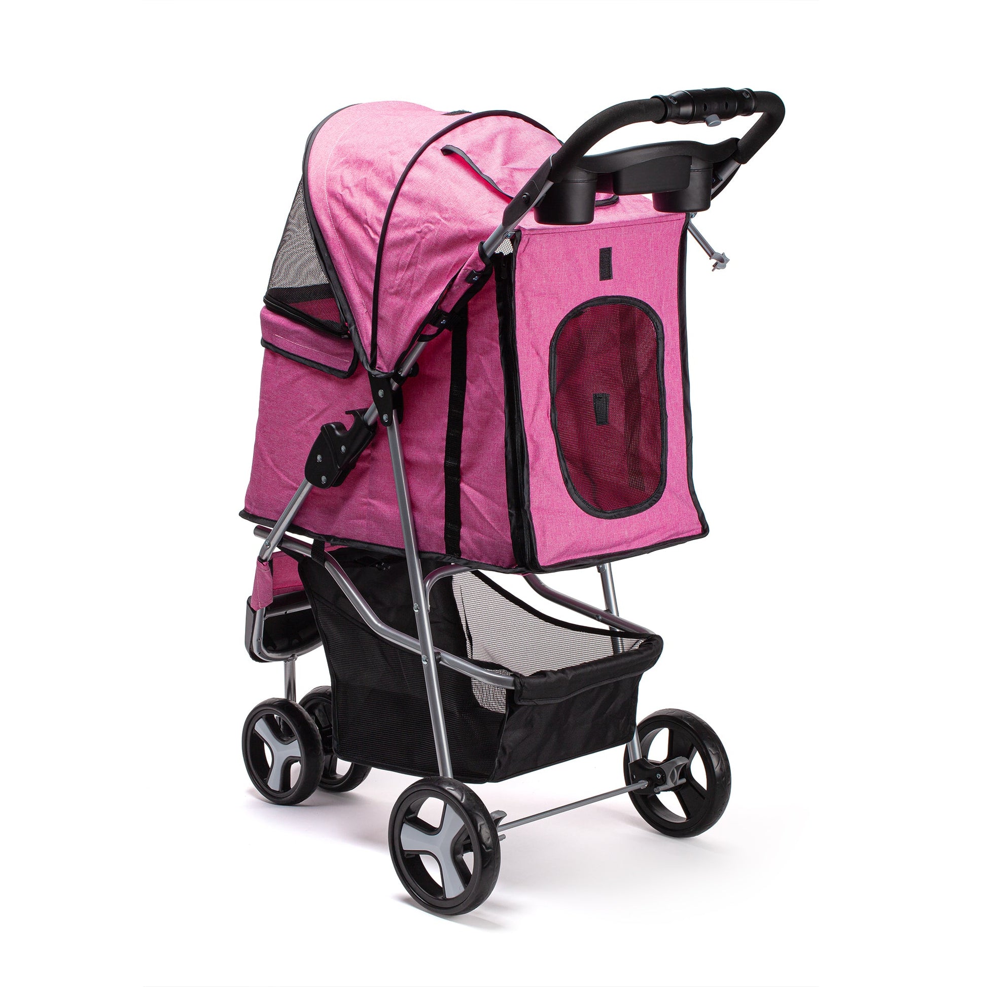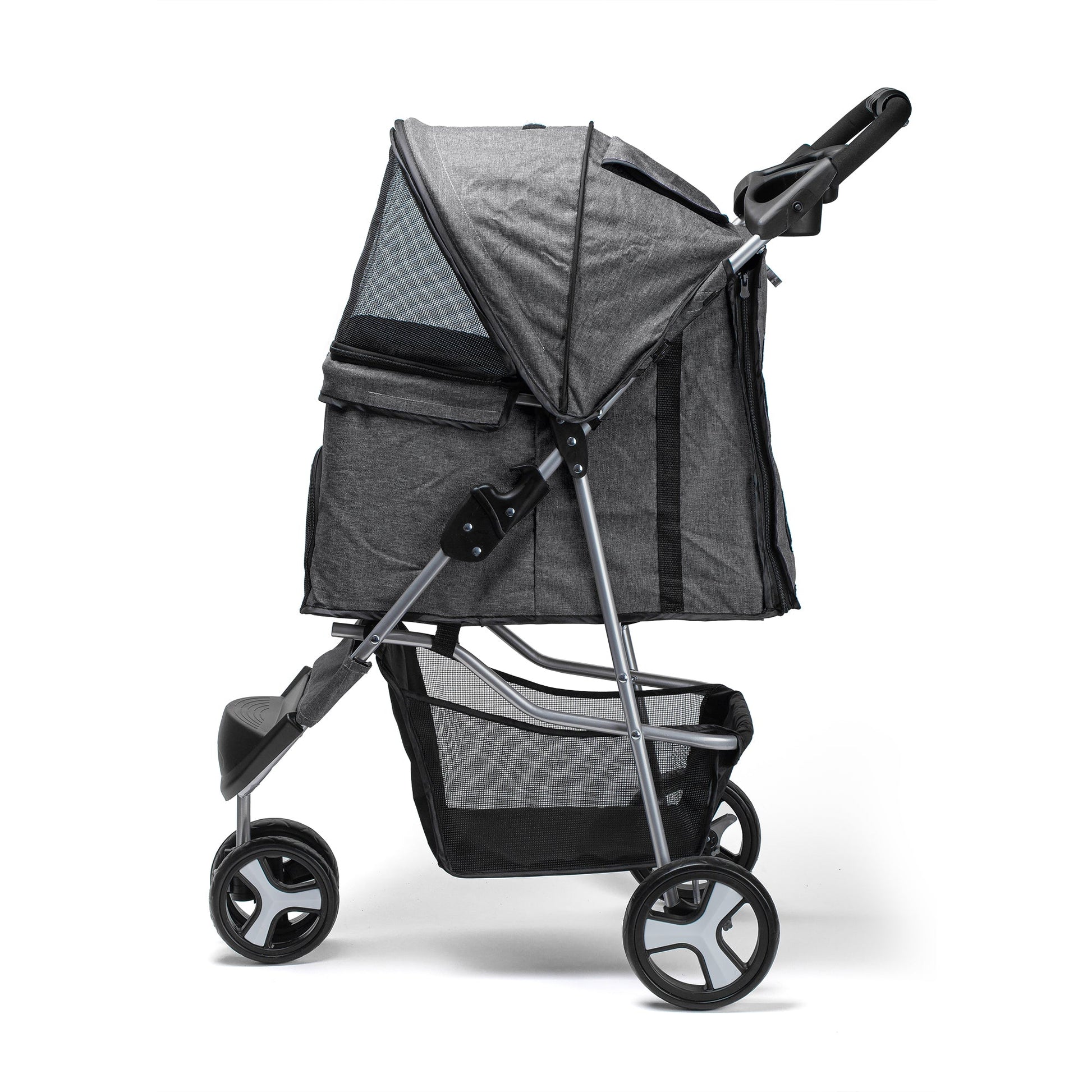 The Dogline Casual Pet Stroller keeps your pet comfortable while getting them out of the house and into the great outdoors. This stroller features mesh windows, soft bedding material, multi-zippered entry points, a storage compartment and very stylish fabric. The large wheels are great for navigating a variety of surfaces.