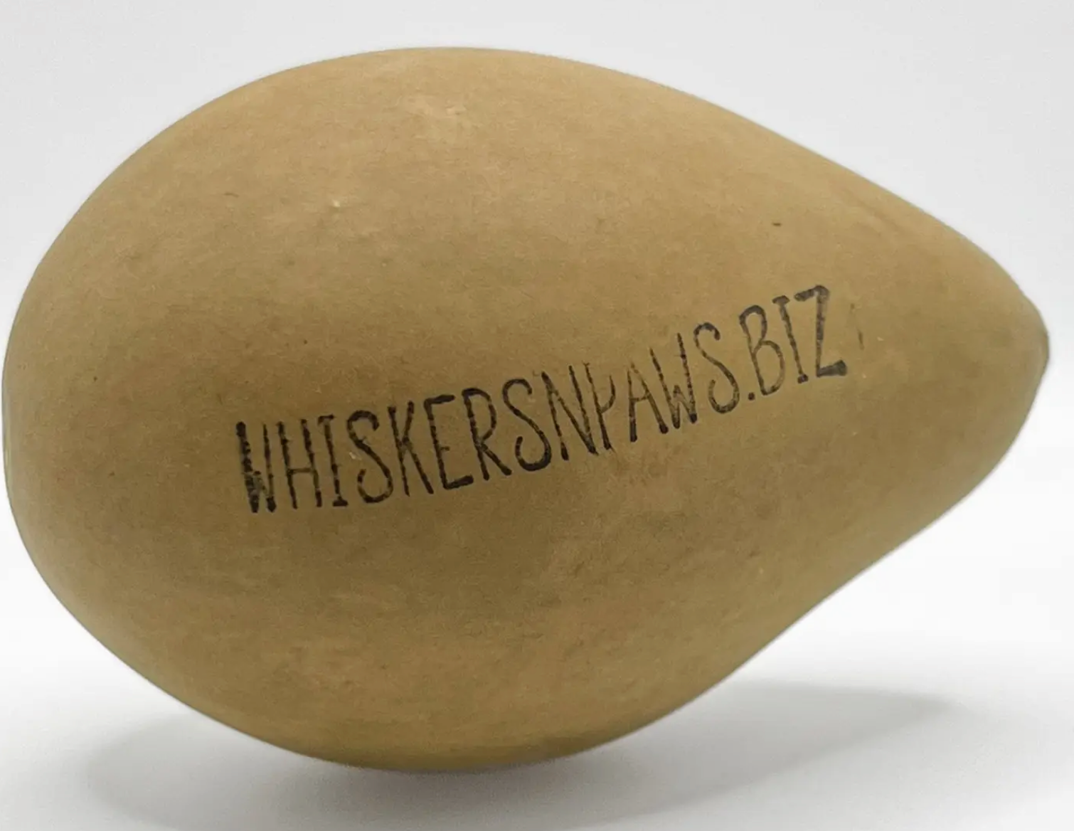 Cat-a-gourds are dried egg shaped gourds with seeds that make a rattling noise when gourds are rolled or shaken. Gourd sizes average 2" x 1.5" but some may be smaller or larger.