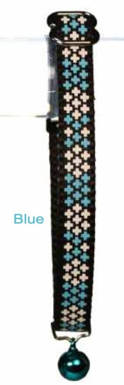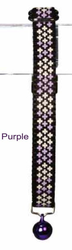 • Cross reflective cat collars are available in four beautiful color prints on basic black webbing.