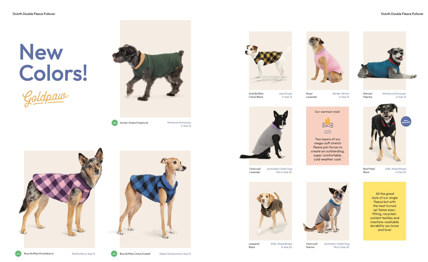 When you need serious warmth, keep your dog toasty in our two-layer reversible Duluth Double Fleece. Dual layers of our unbelievably soft, stretchy fleece team up to create an unbelievably comfortable and warm coat for your dog. Our fleece has added spandex, recycled content that is eco-friendly, and it's machine washable! It’s an awesome garment for our deep winter doggies!
