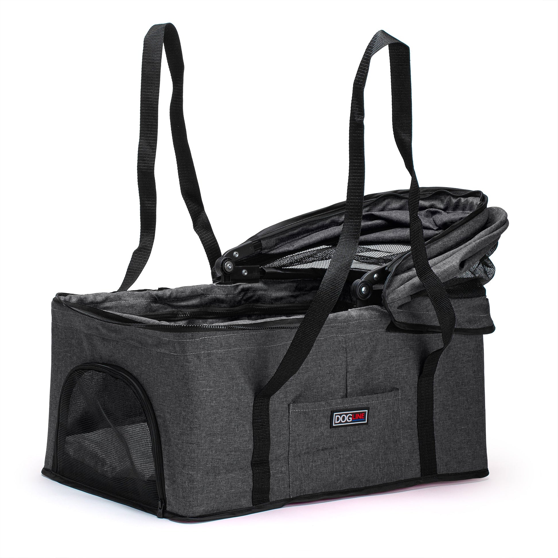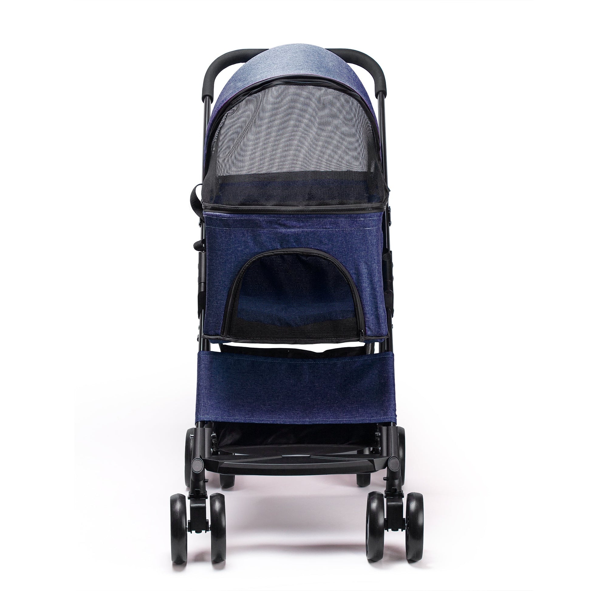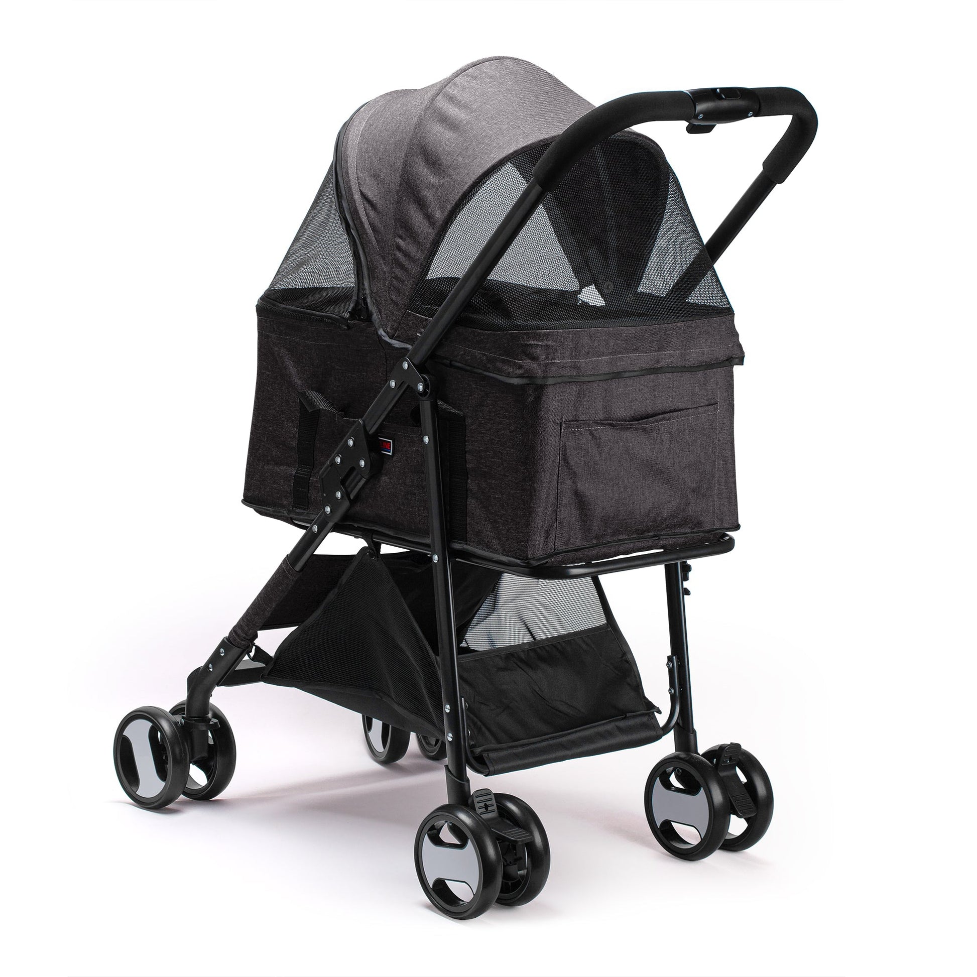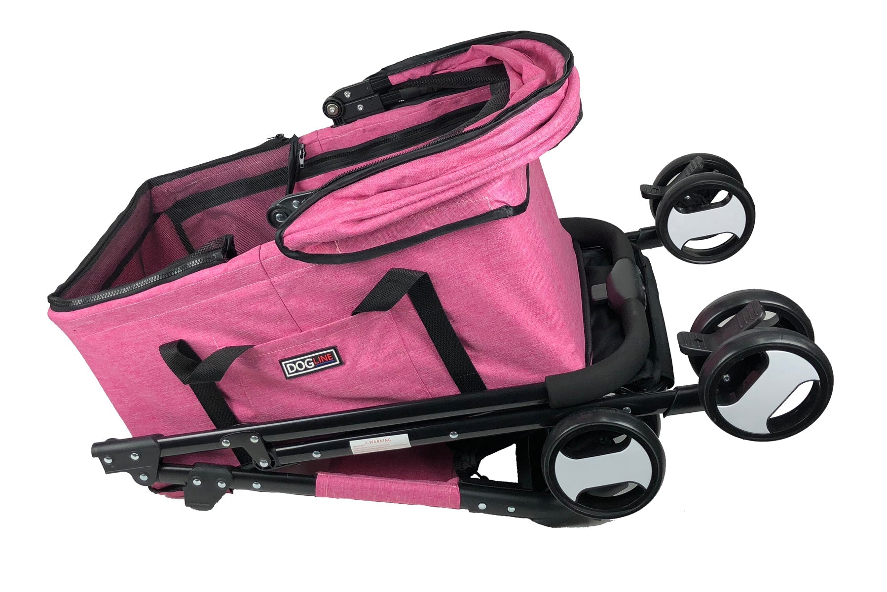 The Dogline Executive Pet Stroller keeps your pet comfortable while getting them out of the house and into the great outdoors. This stroller features mesh windows, soft bedding material, multi-zippered entry points, a storage compartment and very stylish fabric. The large wheels are great for navigating a variety of surfaces.