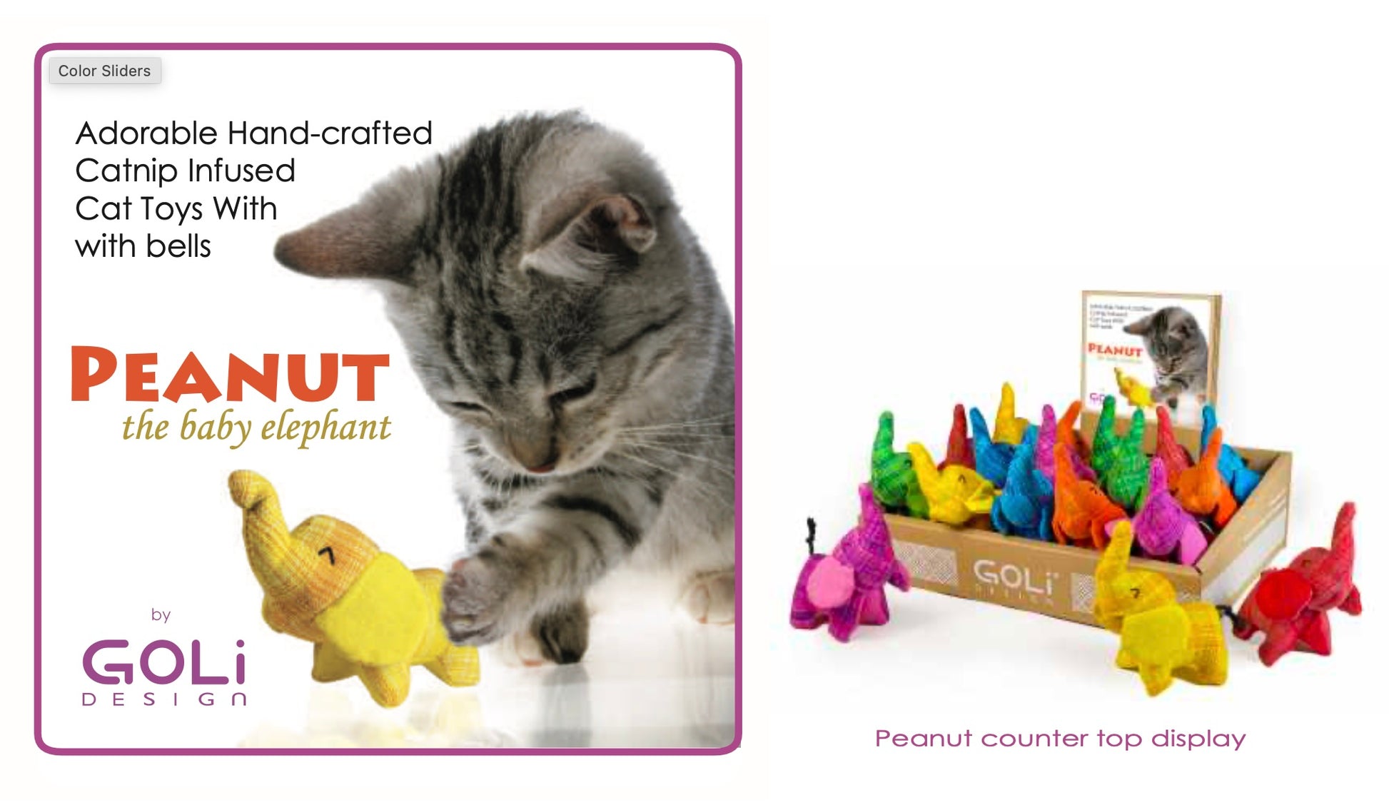 These cute elephants cat toys are hand-crafted with cotton fabric and synthetic filler.