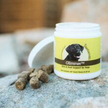 Healthy skin and coat require adequate dietary levels of essential Omega-3 and Omega-6 fatty acids (EPA, DHA, and GLA). GlimmerTM is specially developed to provide these necessary building blocks of healthy skin and a beautiful, huggable coat in dogs of all ages.