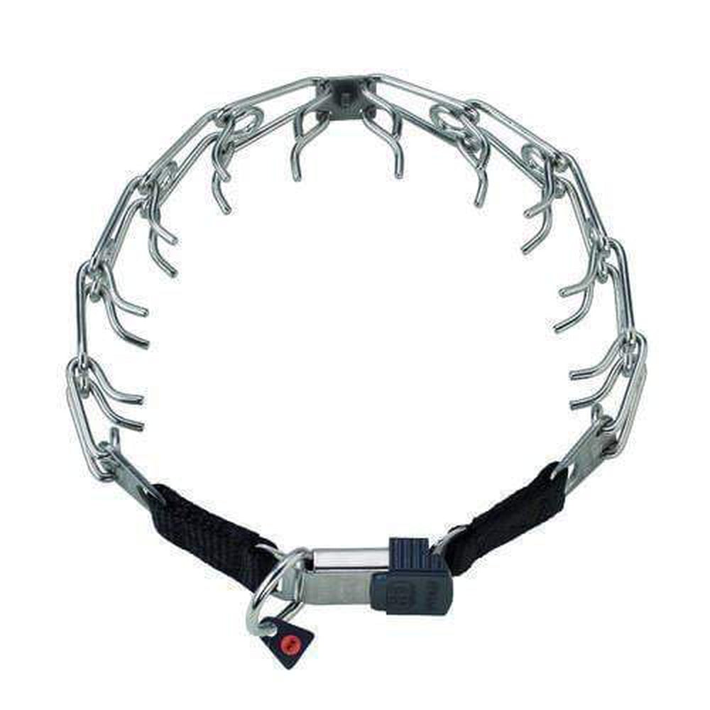 This stainless-steel training prong collar is safe and easy to take on and off of your dog due to the ClicLock design. The ULTRA-PLUS Training prong collar allows for a quick and pinpoint influence for optimal effect.