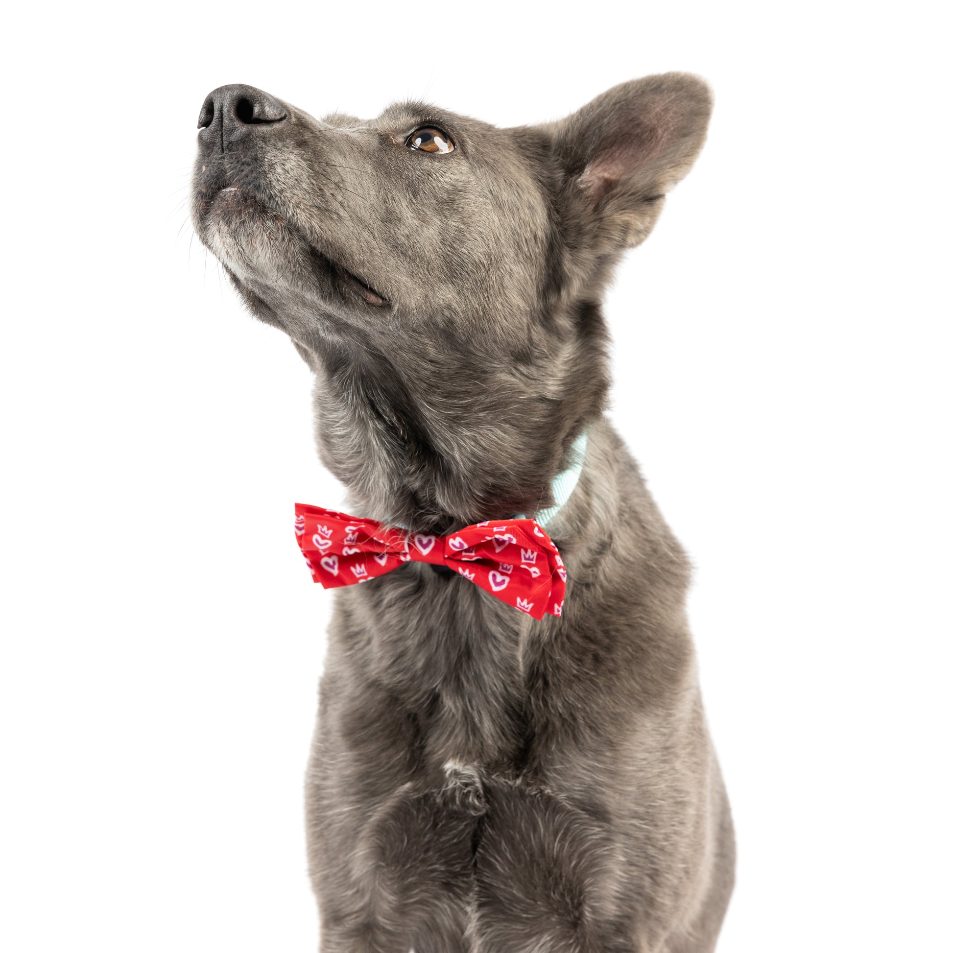 Rule your style with the King & Queen of Hearts Bow Tie. Featuring charming hearts and majestic crowns, this regal accessory is perfect for expressing your love. Fit for a royal, add a touch of whimsy to any outfit.