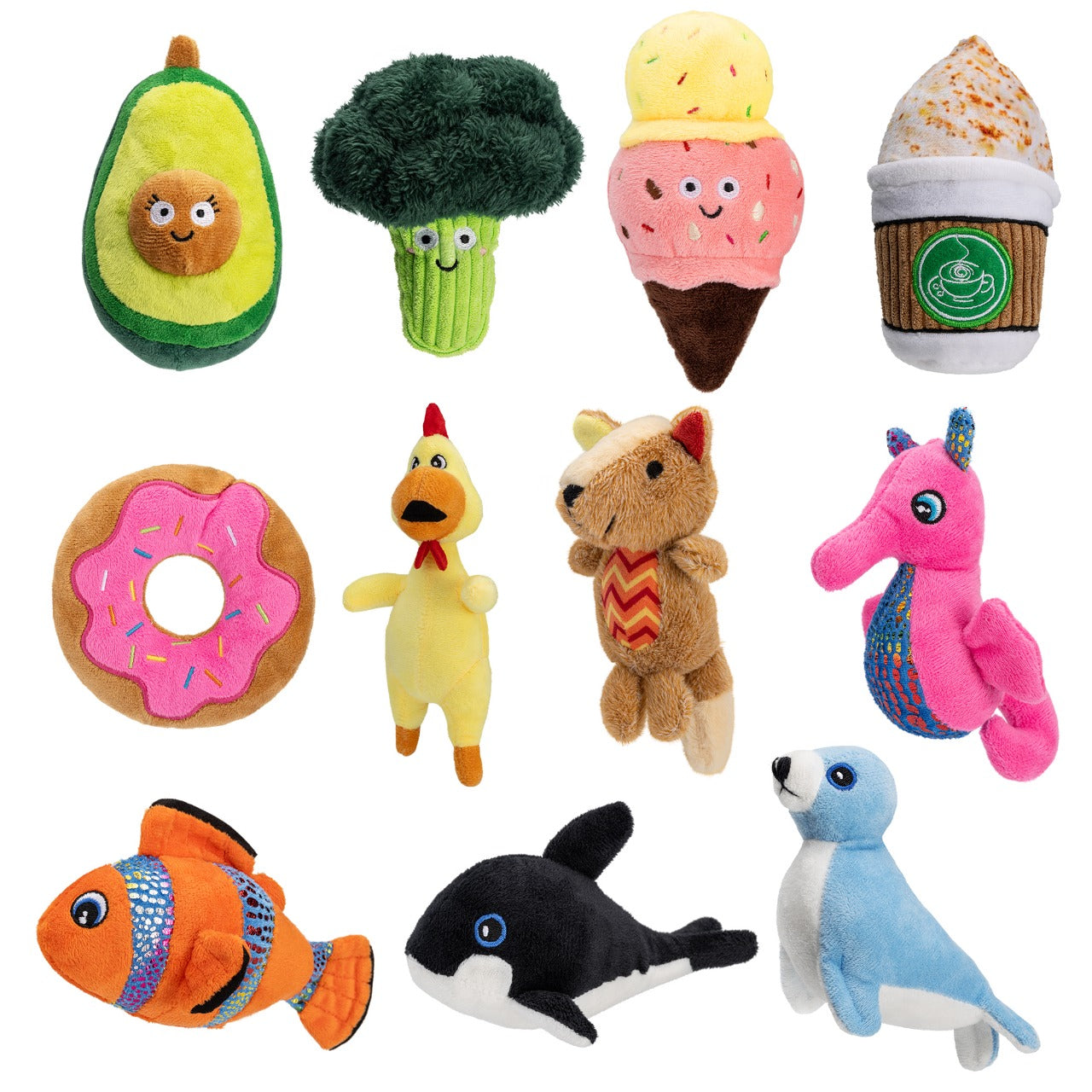 Your puppy deserves a cute companion of their own. Our New Mini Dog Toy Collection is made from soft plush and fabric materials that are safe and fun to play with all day long. A variety of 11 lovely, colorful designs comes in 6-inch size and a squeaker inside to get your pet’s tail wagging. Surprise your dog with a new Mini Donut toy, or get them an Avocado, a Fox, a Chicken, an Ice Cream and other cute small toys for hours of delightful entertainment. Your pup will love cuddling and playing with their new favorite plush toy every single day.