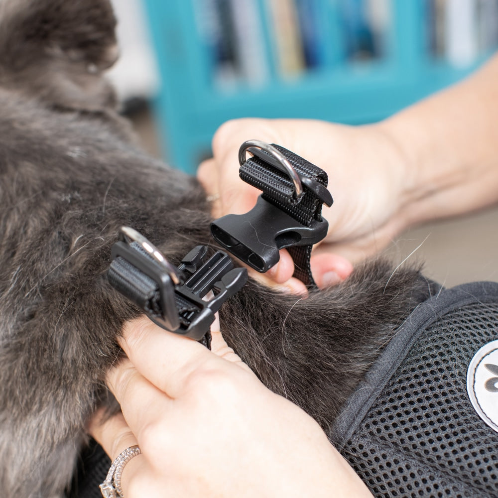 While the Back Out Brake Harness is designed for added security, it is important to make sure you have properly fit the harness to your pet and occasionally monitor for normal wear and tear that may impact the harness' effectiveness.