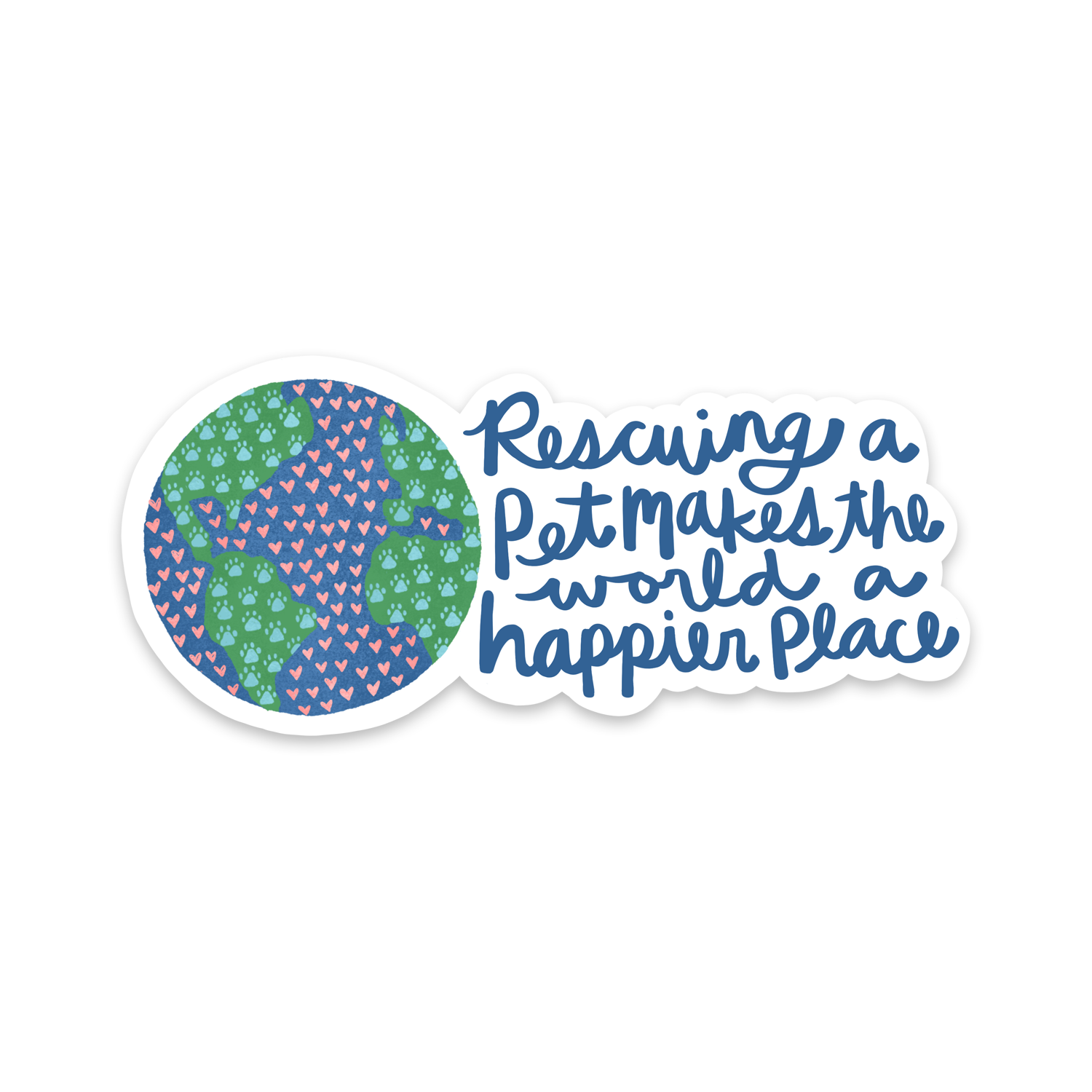 "Rescuing a Pet Makes the World a Happier Place" sticker.
