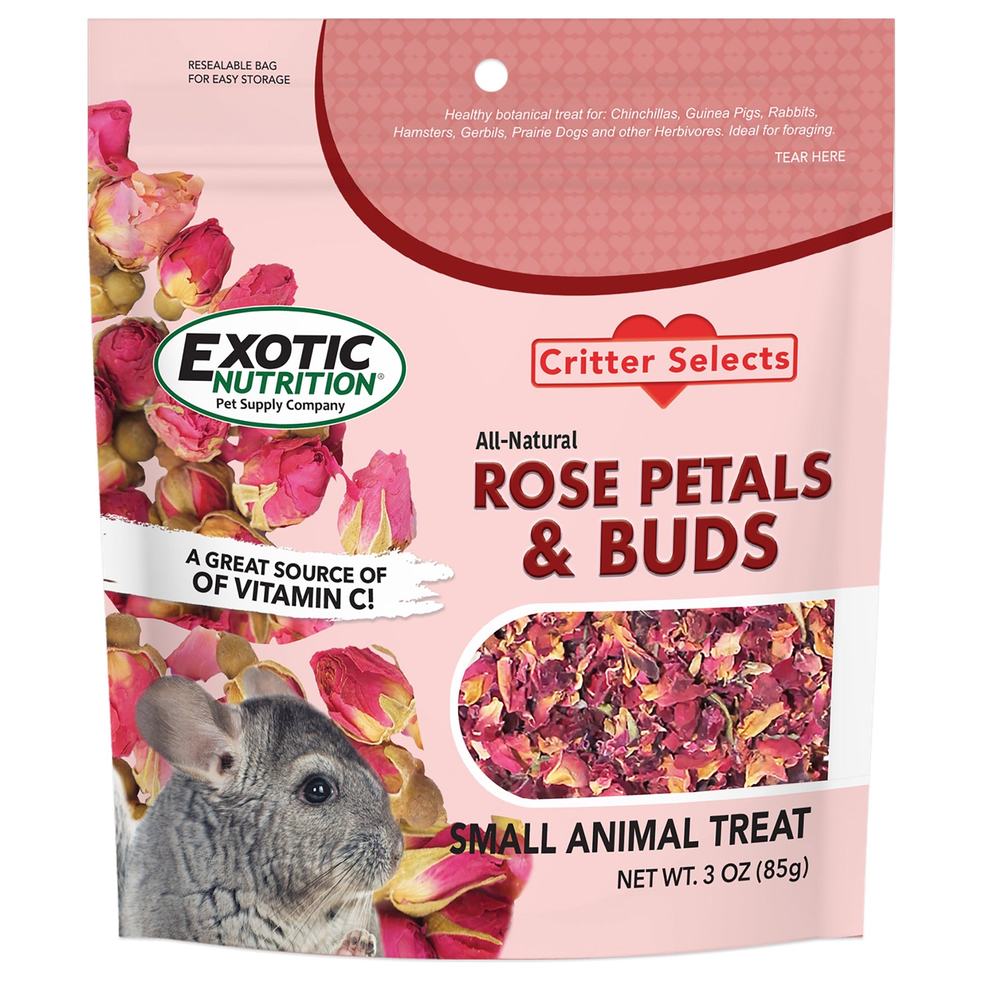 Organic dried Rose Petals & Buds, from the Rose plant. Flowers are a tasty and healthy supplementary food because they have a low energy content, but contain plenty of fiber which makes them the ideal treat for your pet. Dried flowers are a favorite food of herbivores like Degus, Squirrels, Prairie Dogs, Chinchillas, Rabbits, Guinea Pigs, and other herbivores. These animal feed on grasses, flowers, seeds, bark, and roots in the wild.