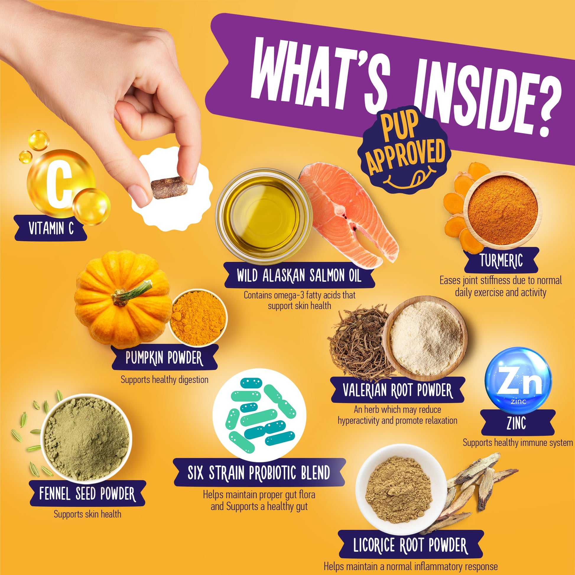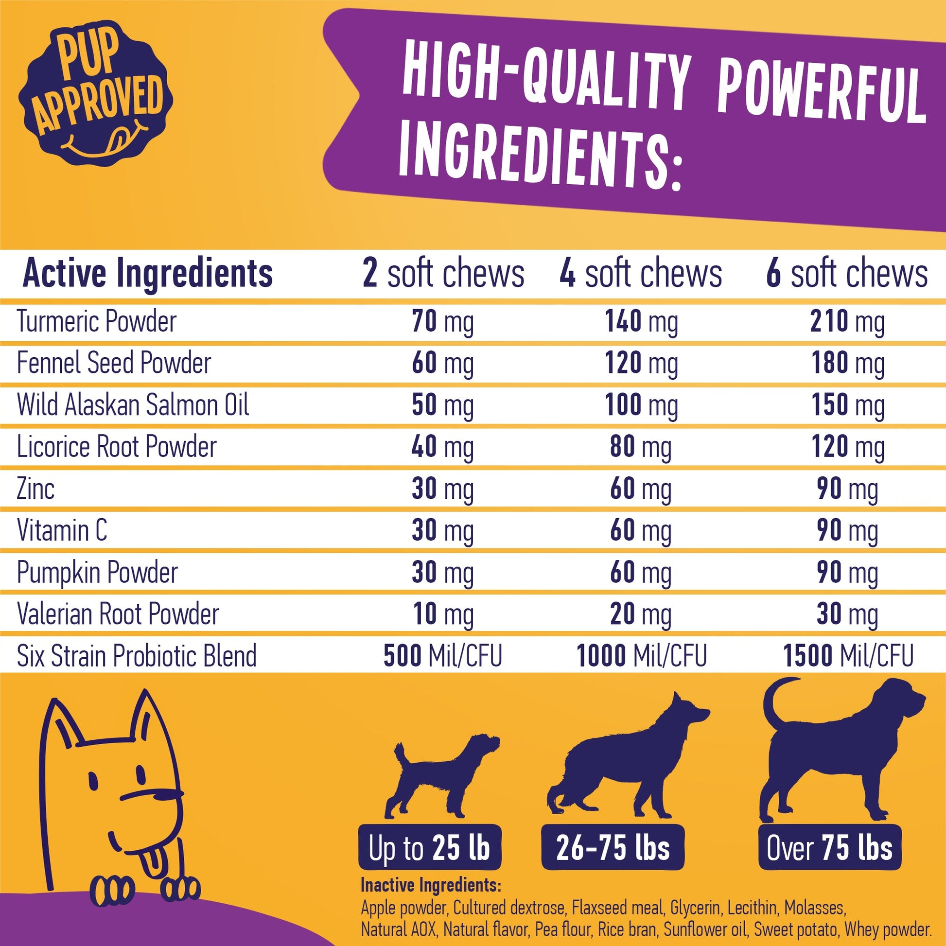Natural Formula: Our dog seasonal and occasional allergies chews are made with only natural and safe ingredients, having an advanced formulation of turmeric, fennel seed, salmon oil, licorice root, zinc, vitamin C, six strain probiotic blend, pumpkin and valerian root.
