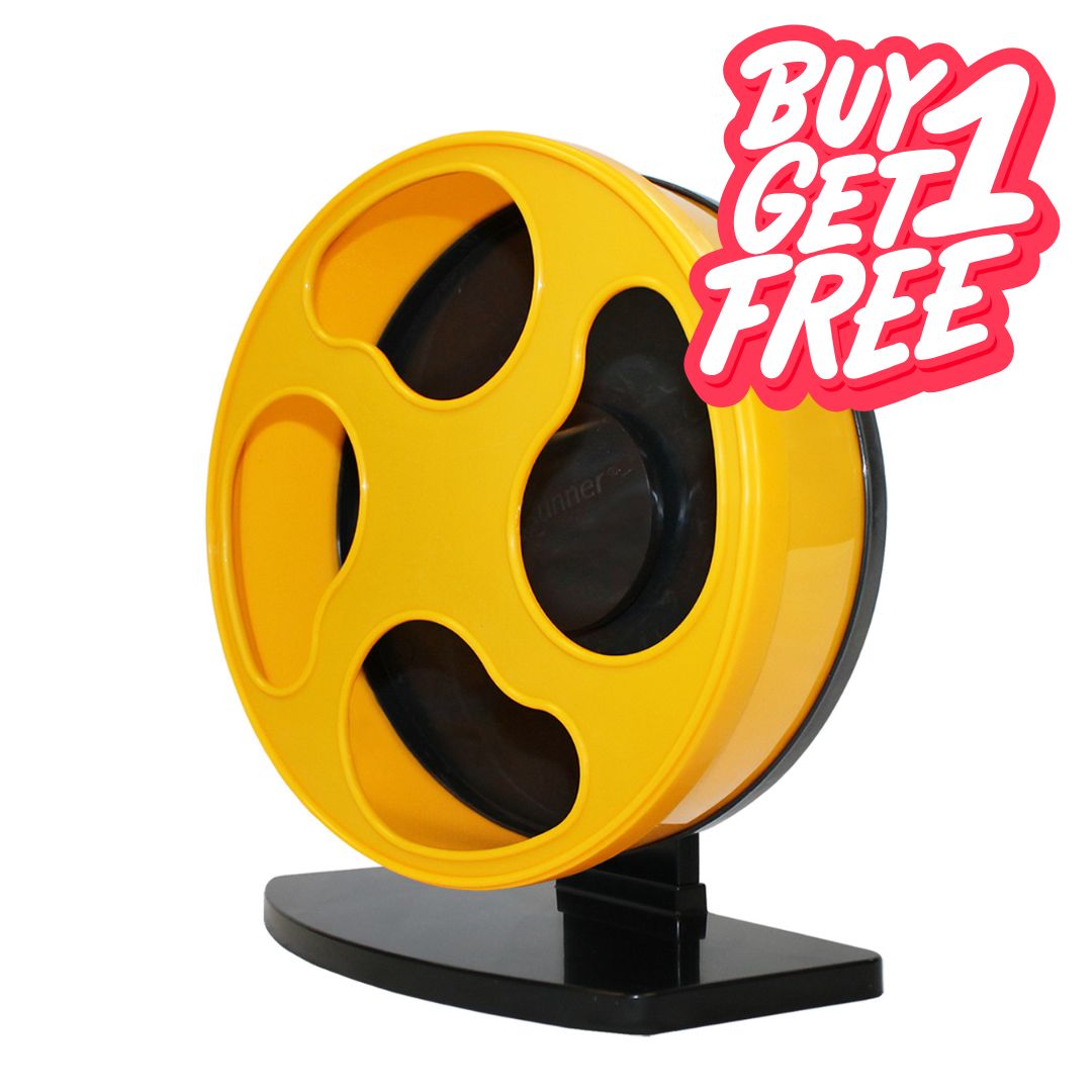 Looking for a safe, quiet, and durable exercise wheel for your furry friends? Look no further than Exotic Nutrition's Silent Runner Wheel 9". This innovative wheel is specifically designed for hamsters (robo, teddy bear, dwarf), mice and similar-sized animals. The dual-ball bearing technology ensures a smooth, quiet spin, so you can enjoy peace and quiet while your pets exercise. Unlike other wheels, there's no axle, which means there's no risk of fur or tail entanglement, heavy duty stand is included. Plus, the textured running tracks provide excellent grip for your pets. The wheel completely disassembles for easy cleaning, making it a breeze to maintain. And with bean-shaped openings and a solid black rear wall, this wheel is pet-preferred. Trust in the Silent Runner Wheel 9" for a safe spin every time.