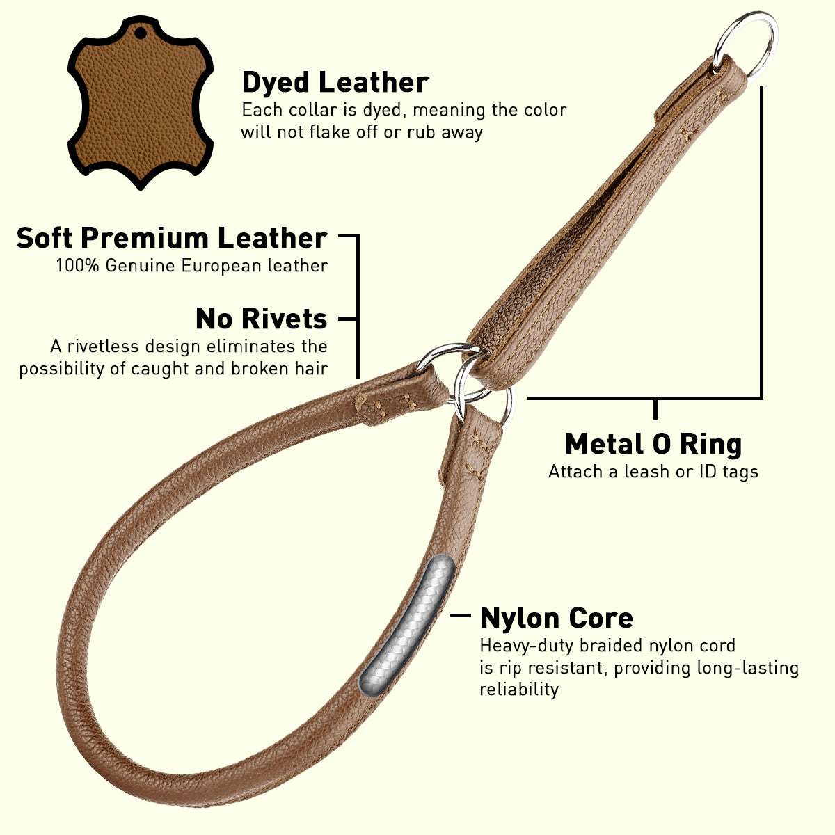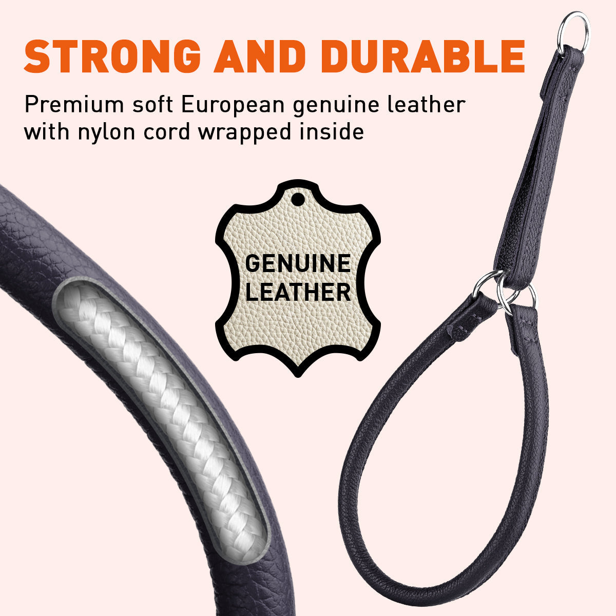 The soft Genuine Leather Martingale Collar is the next generation of super soft and durable collars that provide exceptional comfort and support for the dog and its owner. These fine 100% genuine cow leather Martingale collars bring together simplicity and elegance thanks to their elaborate workmanship.
