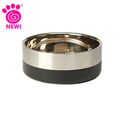 Catalina, Double-Walled Stainless-Steel Bowl, with a 3-cup capacity, is perfect for small dogs or cats. Crafted from double-walled stainless steel, it features a non-skid rubber base to prevent sliding and spills. The double-wall construction insulates, keeping food and water at the desired temperature longer, adding strength for outdoor or indoor use. Dishwasher safe with a rounded rim for easy scooping. Stylish design with two-tone upper half and black on the bottom.