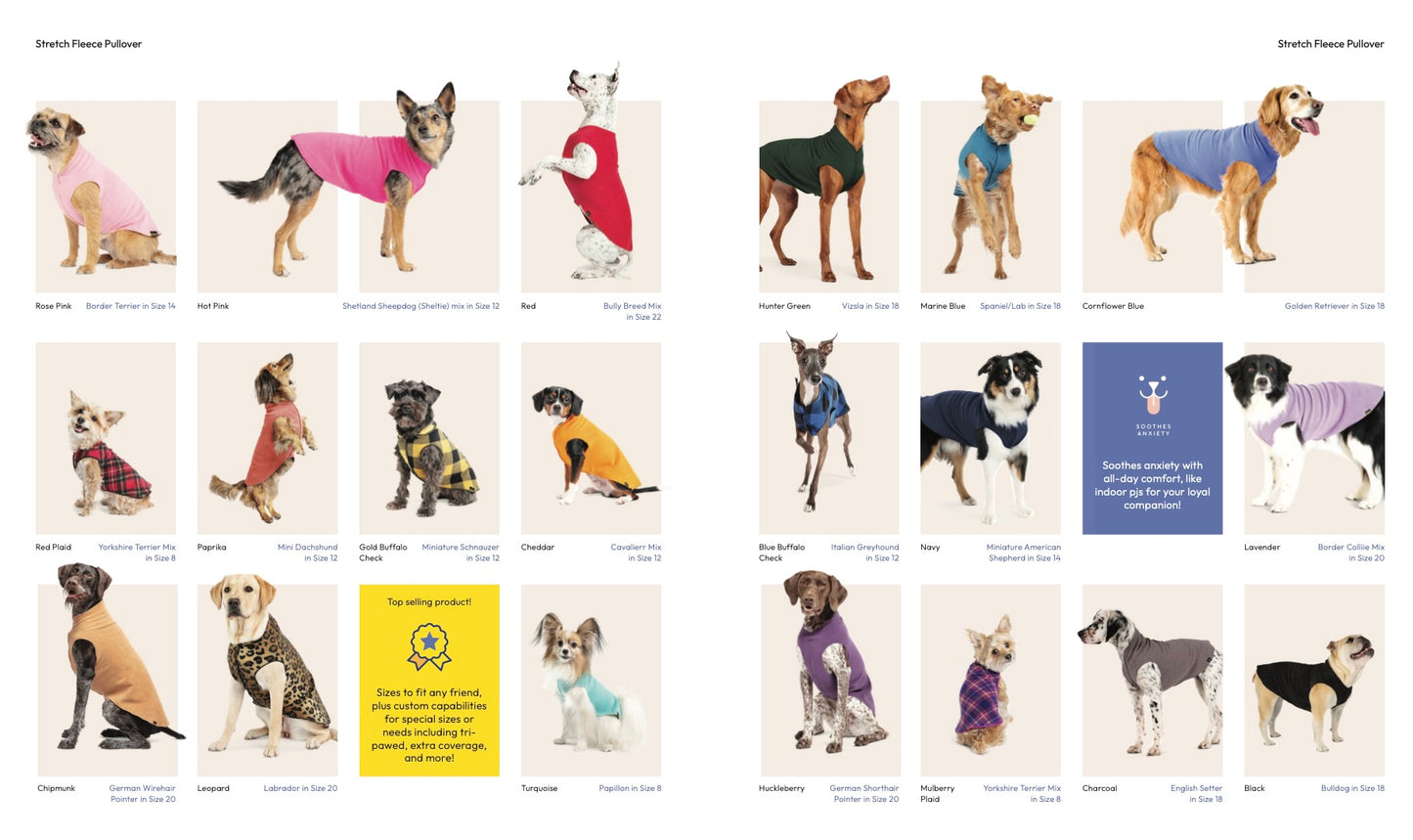 Beware of imitations - our superb year-round popover fleece is the best you’ll find anywhere! This is truly a fantastic and useful garment that you’ll reach for over and over again. The GoldPaw Stretch Fleece contains recycled polyester and spandex for 4-way stretch. The finish is unbelievably soft, like velvet. It’s a piece of cake to put on and moves with your dog, making it the most comfortable coat around. Washes like a dream!