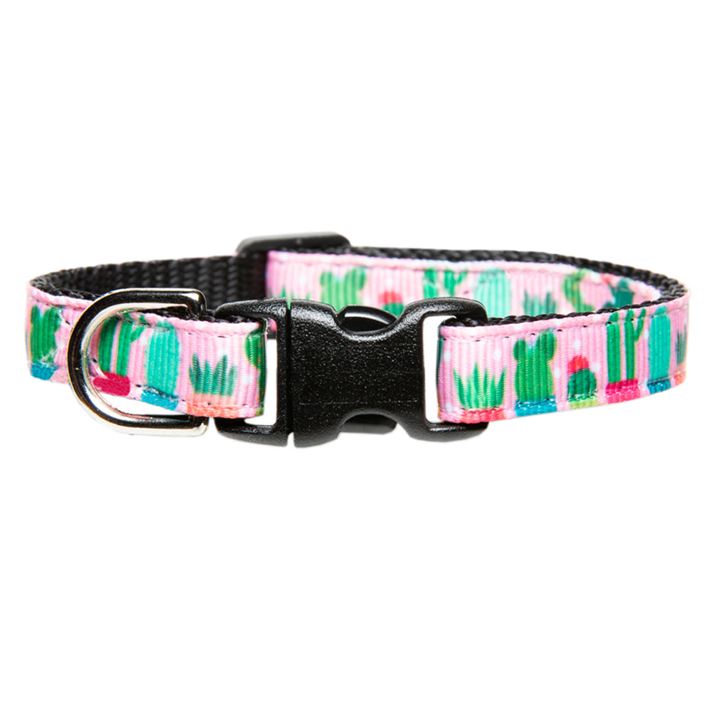 The Can't Touch This cat collar features various cactus on pink with little white polka dots. Your kitty/puppy will be unstoppable with this new look.