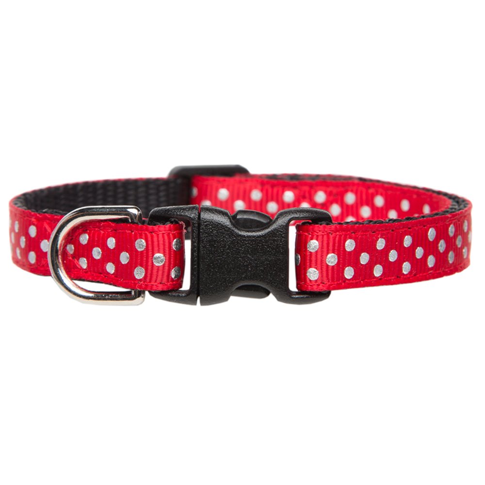 The Future Is Bright cat collar features a metallic silver swiss dots on red. This festive print is the perfect look for your little helper [kitty] this holiday season. All collars feature breakaway buckles for your cat safety. Not to be used with a leash. Sizing: Kitten fits necks 5-8" Standard fits necks 7-10" Lion fits necks 9-12". All of our collars are hand crafted with love in Portland, Oregon. All collars are made of high quality webbing for durability, covered with hand selected ribbon. We use high end D-rings and durable hardware that secures easily into place. We also double stitch stress points; making our collars both sturdy and gorgeous. Note that each collar is custom made and fabric pattern may vary. MSRP: $12.99 - $13.50