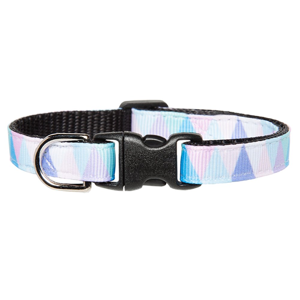 The Late Riser cat collar features a pretty triangle print. This soft look is the perfect final touch for the kitty who takes their time enjoying the finer things in life. All collars feature breakaway buckles for your cat's safety. Not to be used with a leash. Sizing: Kitten fits necks 5-8" Standard fits necks 7-10" Lion fits necks 9-12" A bell can also be added for an additional $0.50. All of our items are handcrafted with love in Portland, Oregon. All collars are made of high quality webbing for durability, covered with hand selected ribbon. We use high end D-rings and durable hardware that secures easily into place. We also double stitch stress points; making our collars both sturdy and gorgeous. Note that each collar is custom made and fabric pattern may vary. MSRP: $12.99 - $13.50
