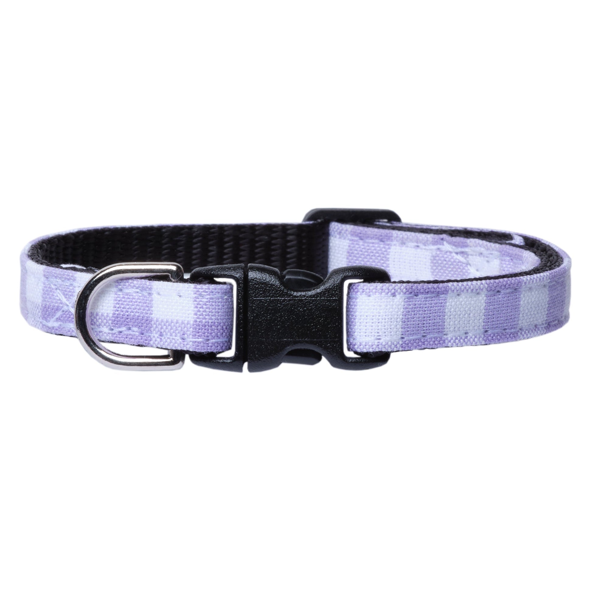 The Lazy Sunday Cat Collar features pretty lavender gingham. The perfect signature look for the cat with no plans.
