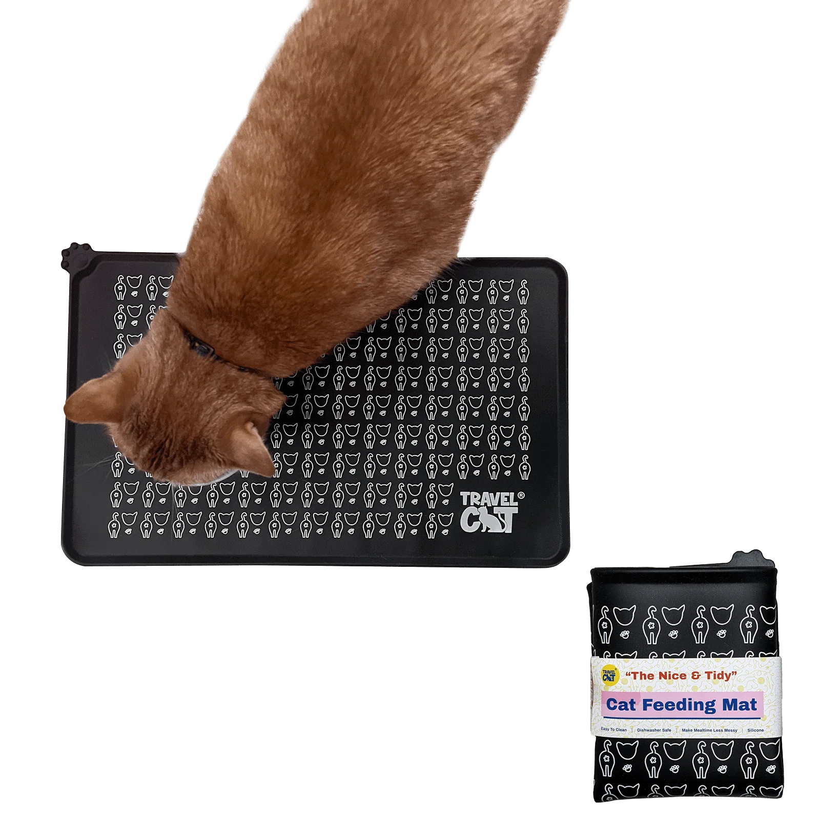 "The Nice & Tidy" Cat Feeding Mat is purrfect for clean and convenient mealtime, wherever adventure takes you! Roll it up to bring on the go, or keep under your cat's food and water bowls at home for quick and easy clean-up every time.