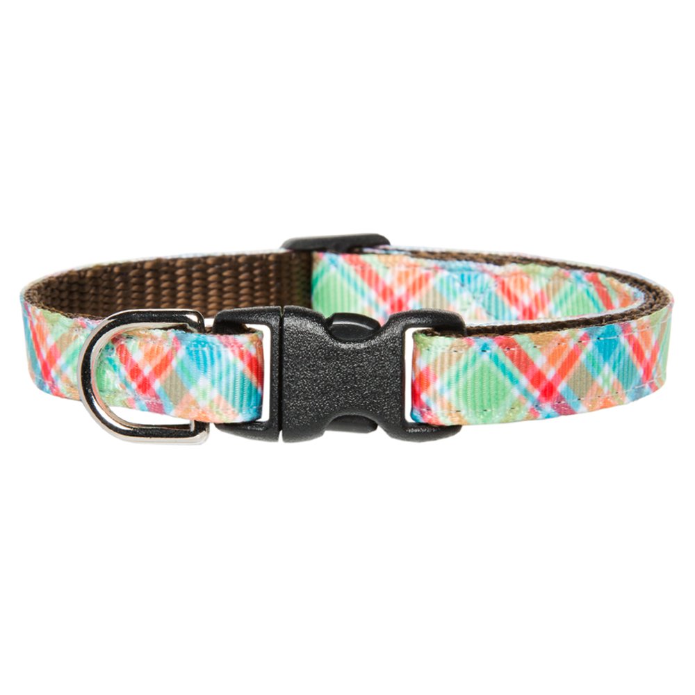 The Plaid-a-Puss cat collar features a traditional plaid print. This classy look is the perfect final touch for the kitty who takes their time enjoying the finer things in life. All collars feature breakaway buckles for your cat's safety. Not to be used with a leash. Sizing: Kitten fits necks 5-8" Standard fits necks 7-10" Lion fits necks 9-12". All of our items are handcrafted with love in Portland, Oregon. All collars are made of high quality webbing for durability, covered with hand selected ribbon. We use high end D-rings and durable hardware that secures easily into place. We also double stitch stress points; making our collars both sturdy and gorgeous. Note that each collar is custom made and fabric pattern may vary. MSRP: $12.99 - $13.50