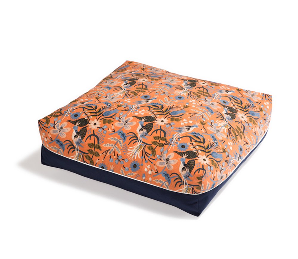 Where style meets comfort. Sweet Pickles Designs’ soft and stylish pet beds are handcrafted in Portland, Oregon and feature: • Featuring beautiful Rifle Paper Co. Fabric Top. • High quality cotton canvas upper and bottom. • Overstuffed insert with down-like hypoallergenic fill. • With the concealed zipper, you can flip the bed over when you want a new look. • Insert fits other Sweet Pickles Designs’ Pet Bed Duvet Covers. • Machine washable - both cover and insert. Size: Unstuffed: 27” x 27" Square Stuffed: Width: 21", Length 21", Height 5.5" The perfect size for cats and small dogs. -------------------------------------------------------------- Washing Instructions For Cover: Dry clean or machine wash cold, zipped closed. Damp dry then hang dry to finish drying process. Warm iron inside-out if needed. Washing Instructions For Insert: Machine wash on gentle with mild detergent. Fill washer, but don't over stuff. Dry on low temperature. Once dry, remove from dryer and fluff. MSRP: $120