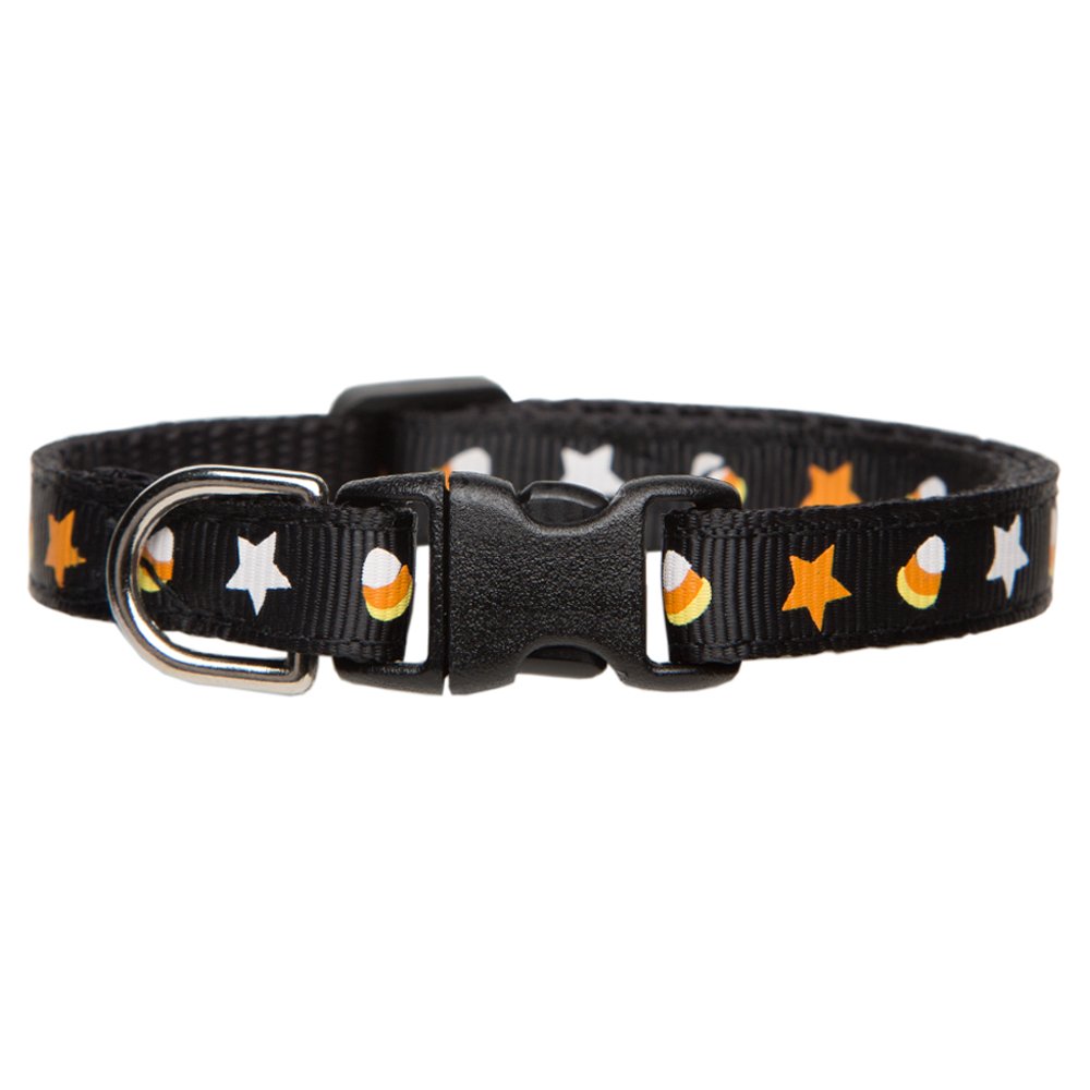 The Sugar Fix collar features whimsical stars and candy corn. This fun seasonal print is the perfect look for your little trick-or-treater.