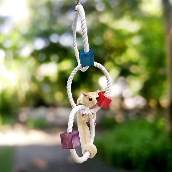 Exotic Nutrition's Tri-Hoop offers pets a fun, acrobatic experience. This Jungle Canopy Toy provides three different interactive hoops that is perfect for cages with multiple animals.