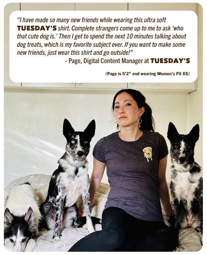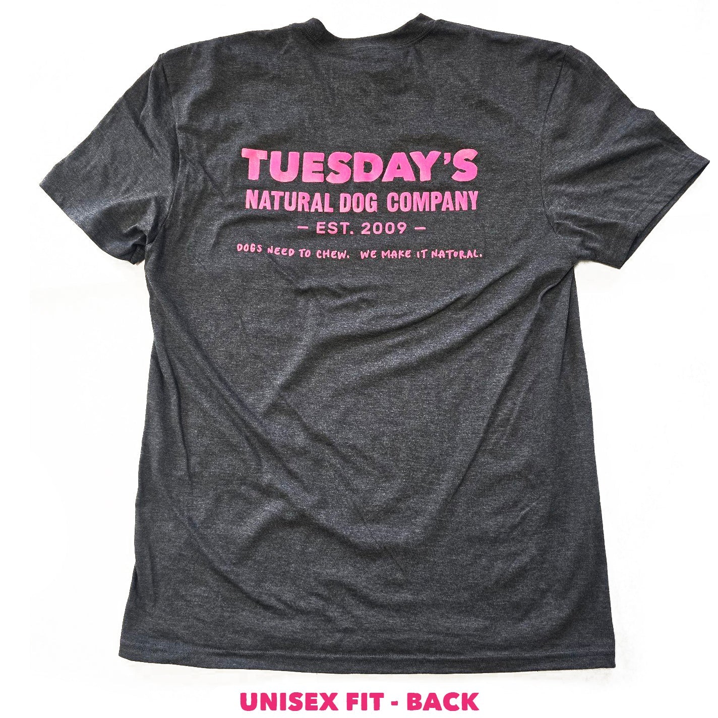 Spend a whole day working a busy shift at your pet supply store without breaking a sweat in this breathable, comfy Tuesday shirt! This soft fitted graphic T shirt is made of 50% cotton and 50% polyester.