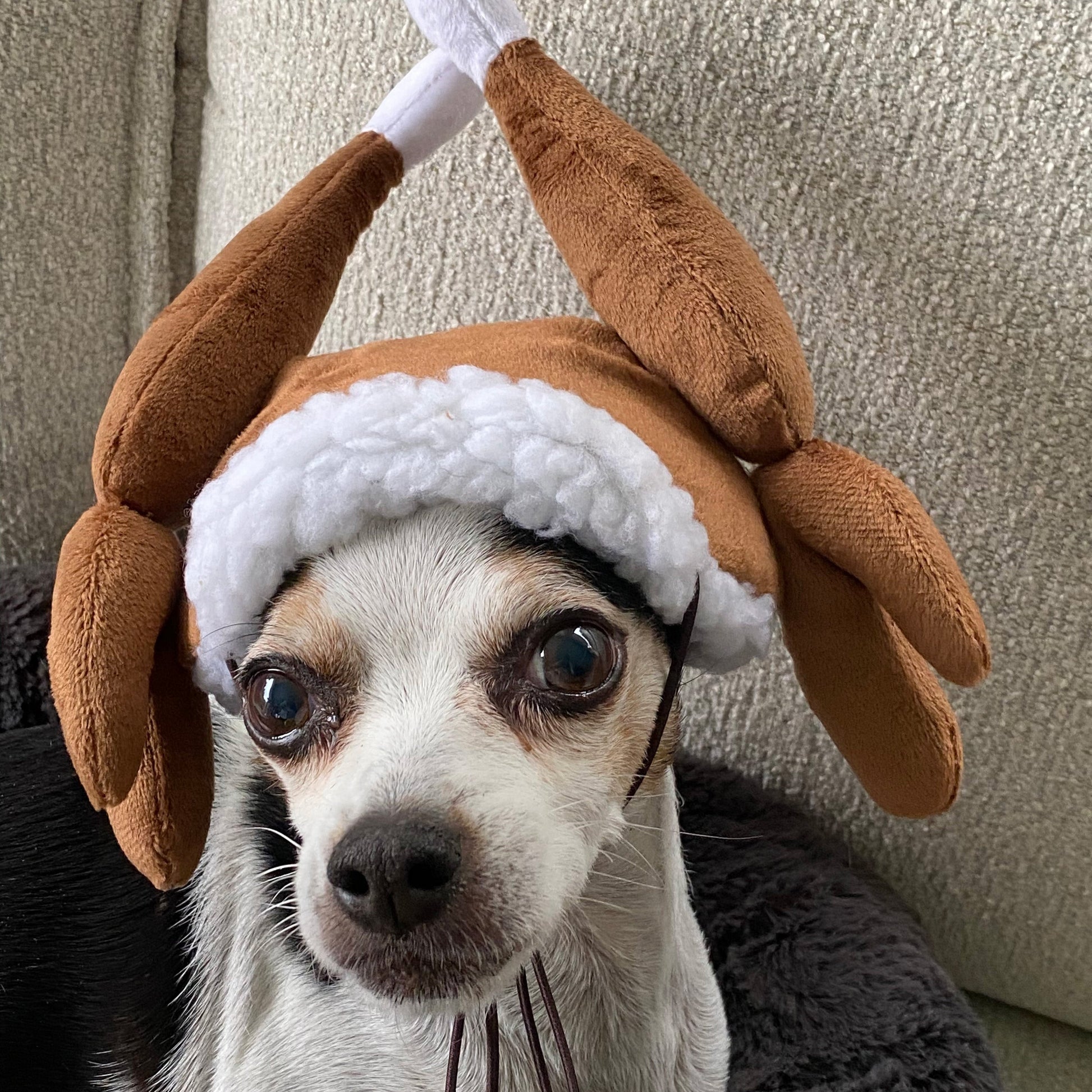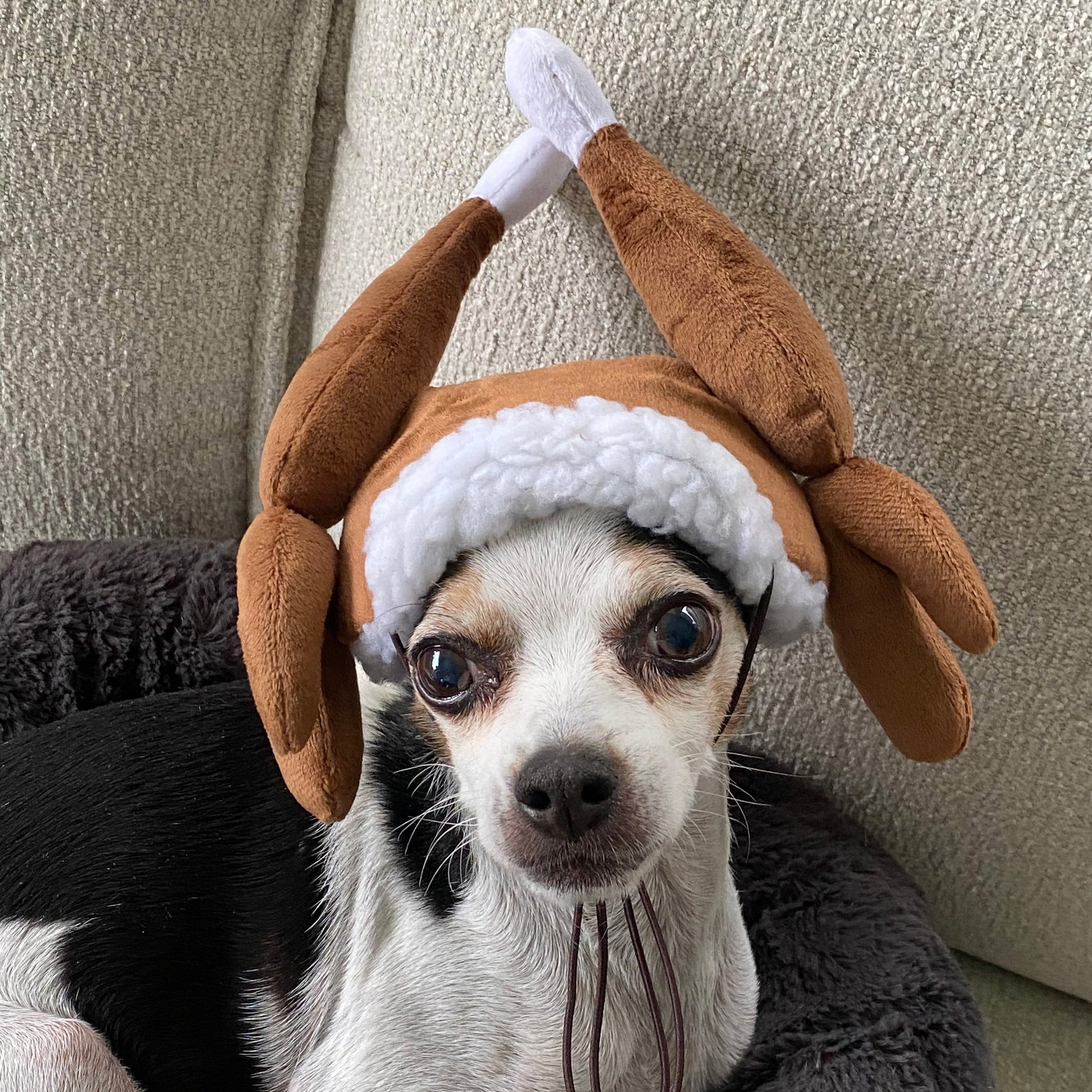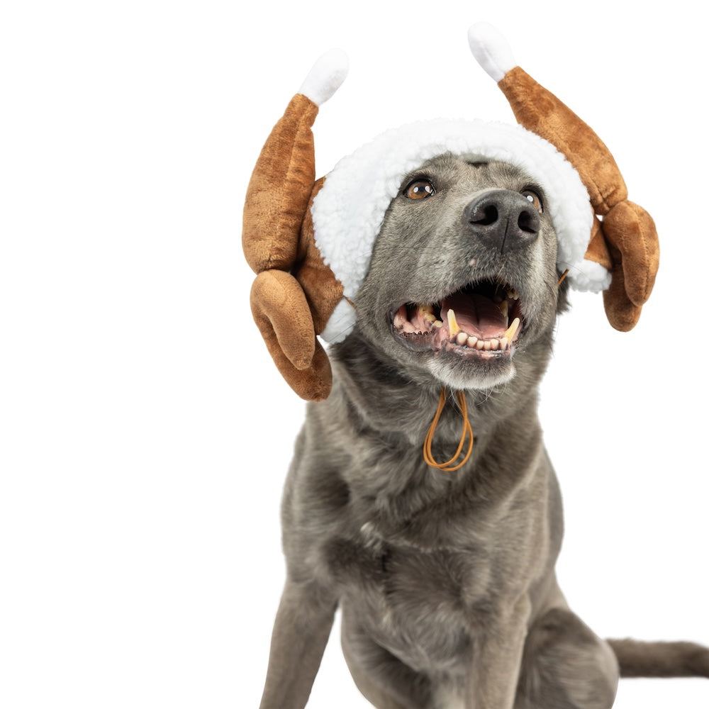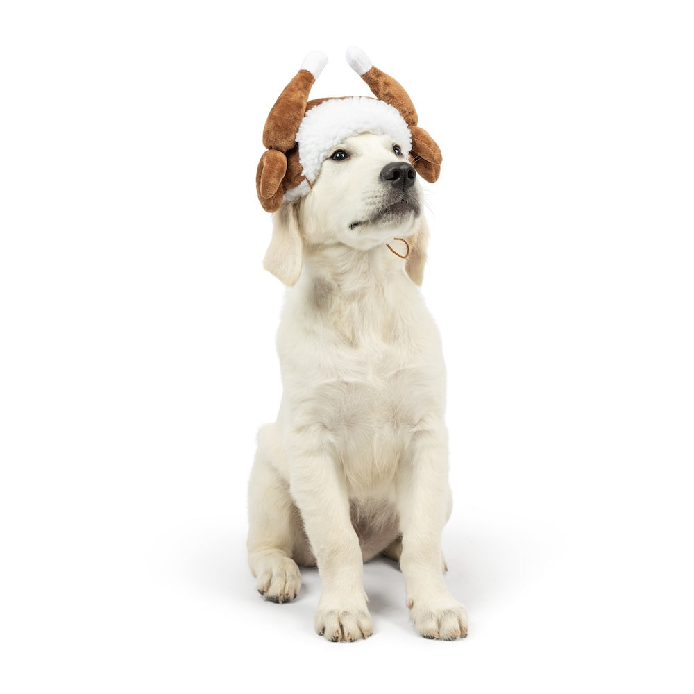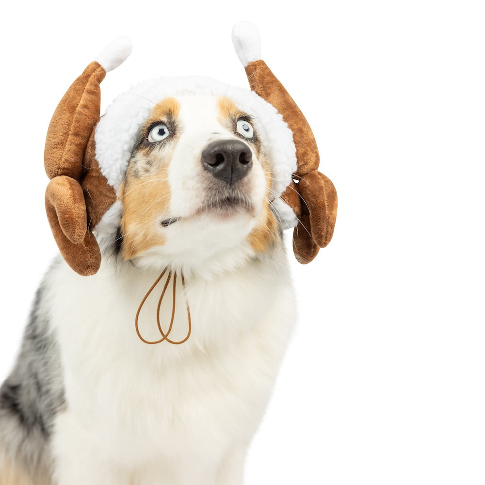 Get ready to add some festive flair to your pet's wardrobe with our Turkey Tester Hat! Designed with whimsy and comfort in mind, this hat features a Sherpa brim and adorable drumsticks that will have your pet ready to gobble 'til they wobble! Whether they're joining in on family gatherings or simply spreading holiday cheer at home, this hat is the perfect way to get your pet into the spirit of the season.