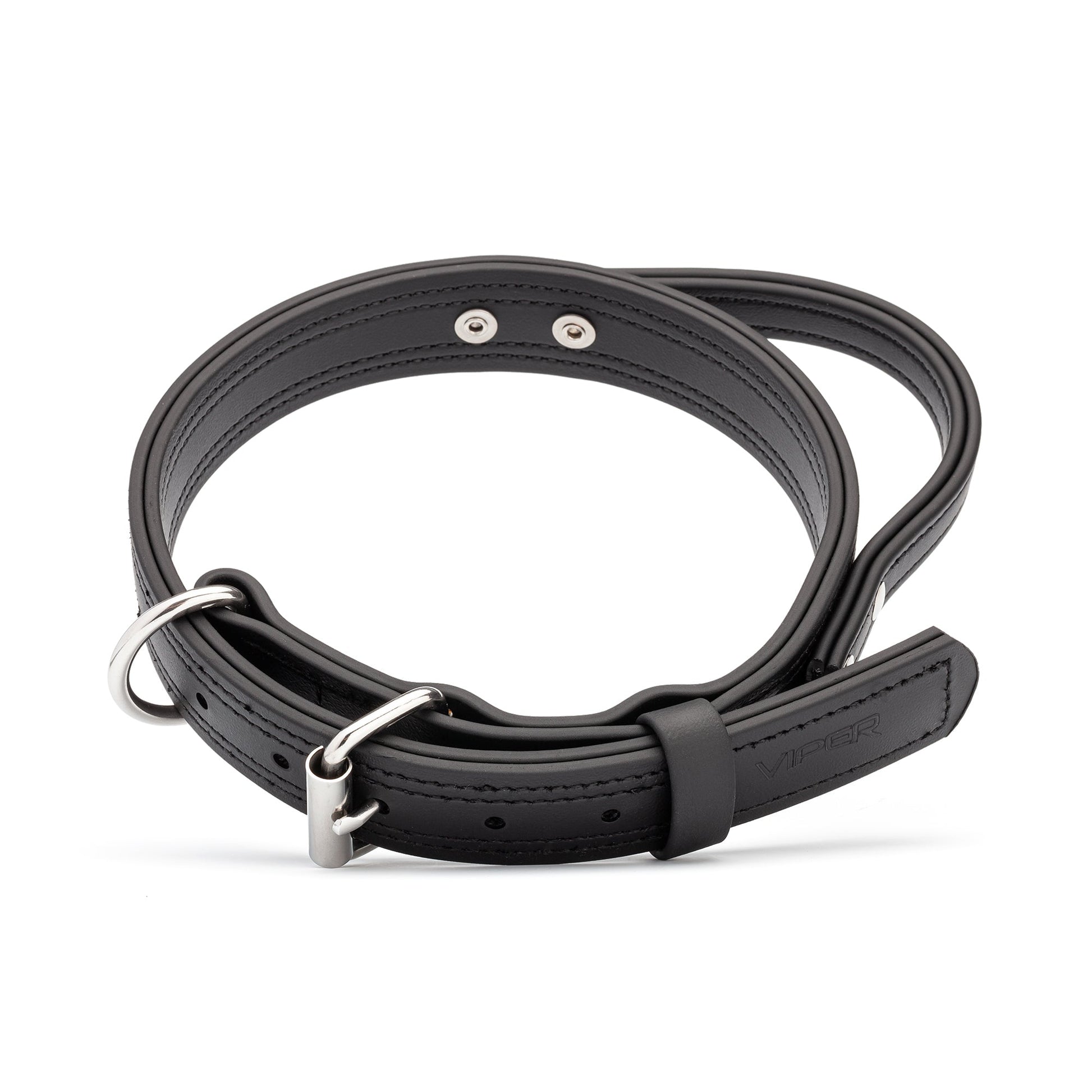 Our Biothane Working Dog Collar with Handle is created from a high-quality Biothane waterproof coated webbing. A trusted name in national sports leagues as well as international military and space organizations, Biothane has a flexible substrate core that is bonded with a durable waterproof coating for protection. It is durable, cleanable, and has proven durability in applications where safety, cleanability, flexibility, and strength are crucial.