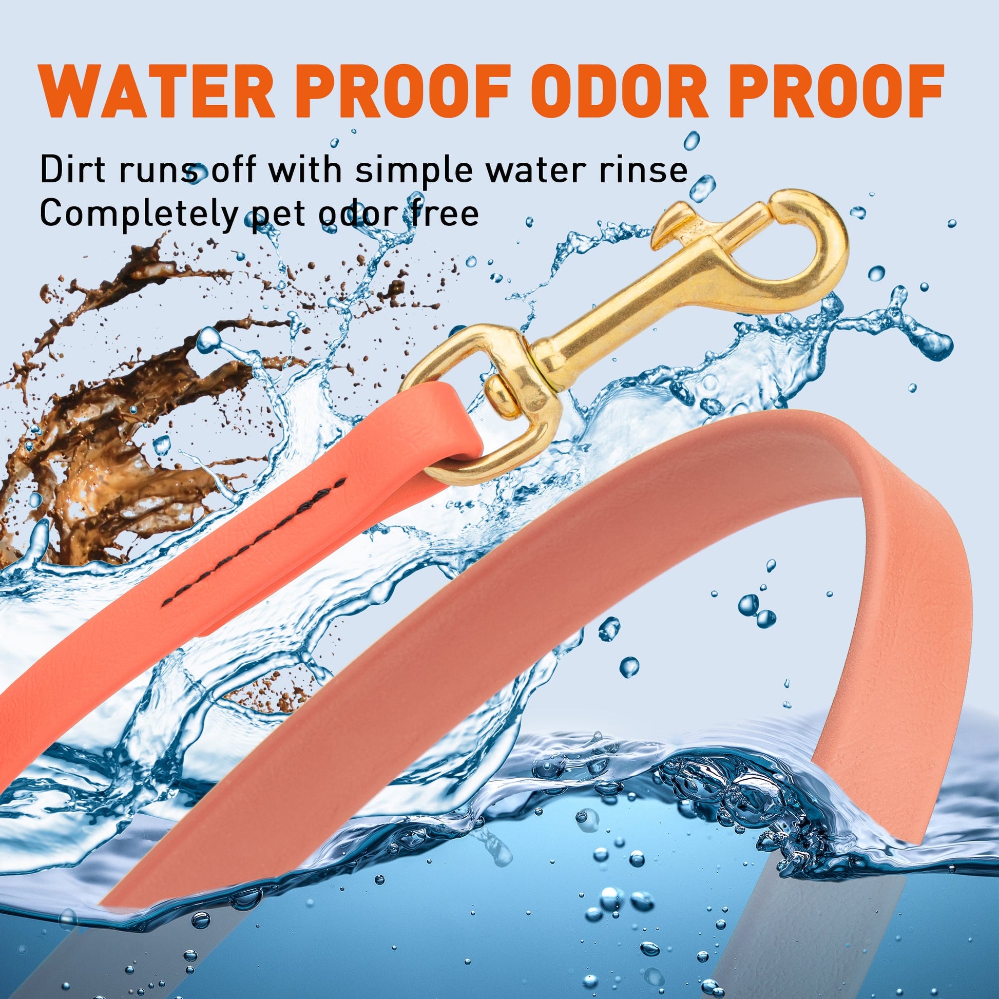 - MORE DURABLE than leather Leashes, the Biothane dog leash boasts a flexible substrate core bonded with a waterproof coating, perfect for environs where strength and cleanliness are crucial.