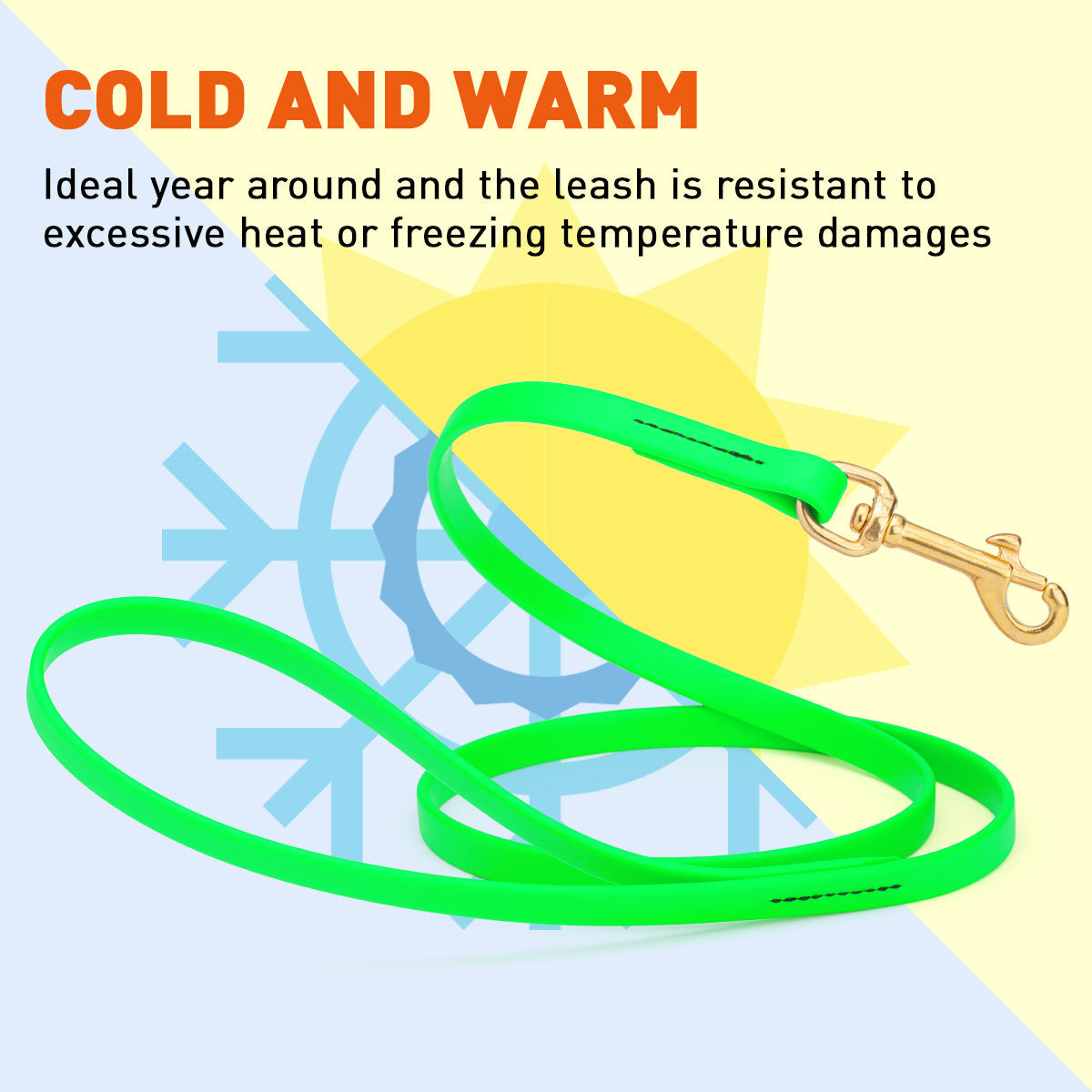 - EXCELLENT PERFORMANCE: Biothane dog leash will not get stiff during extreme cold and will not melt during extreme heat.