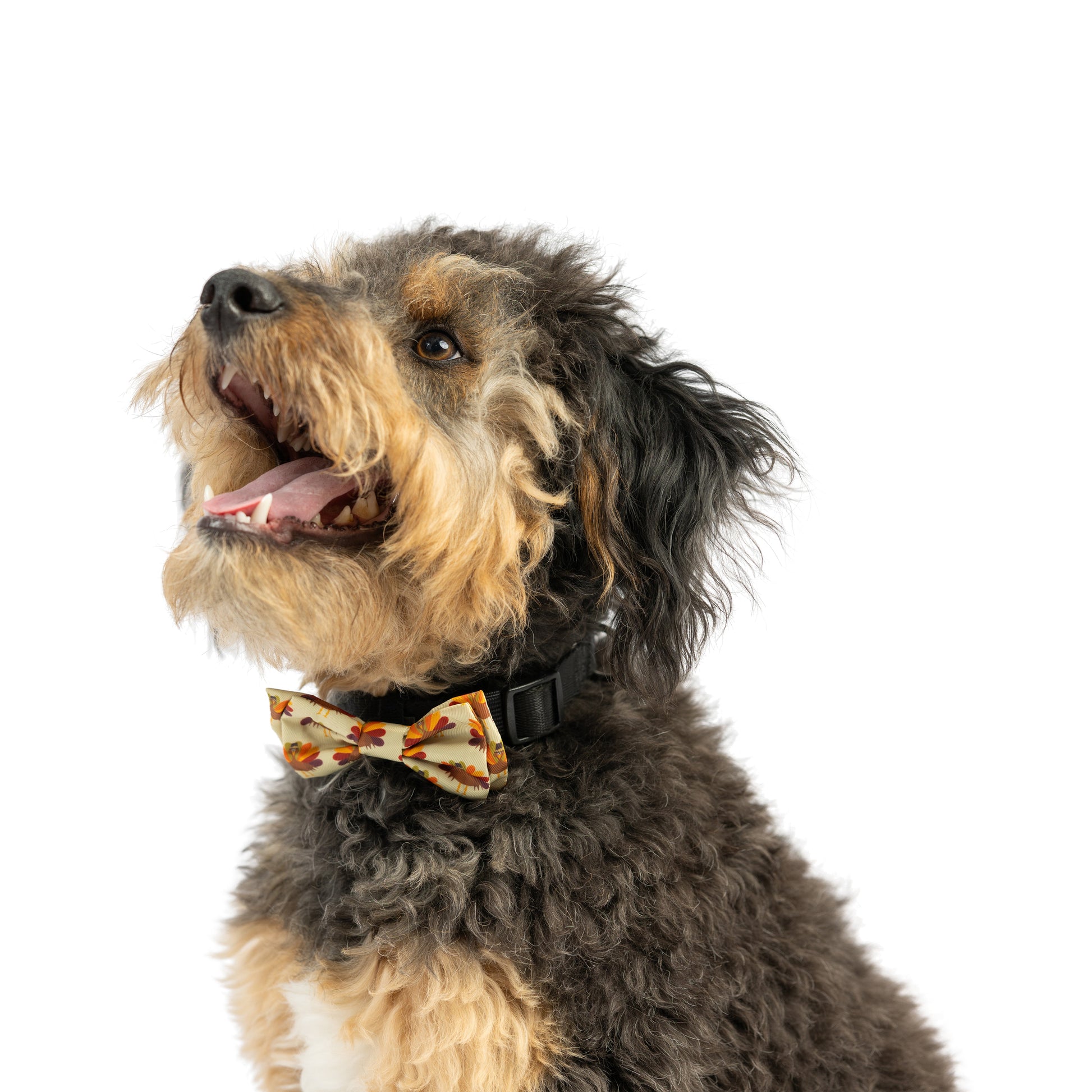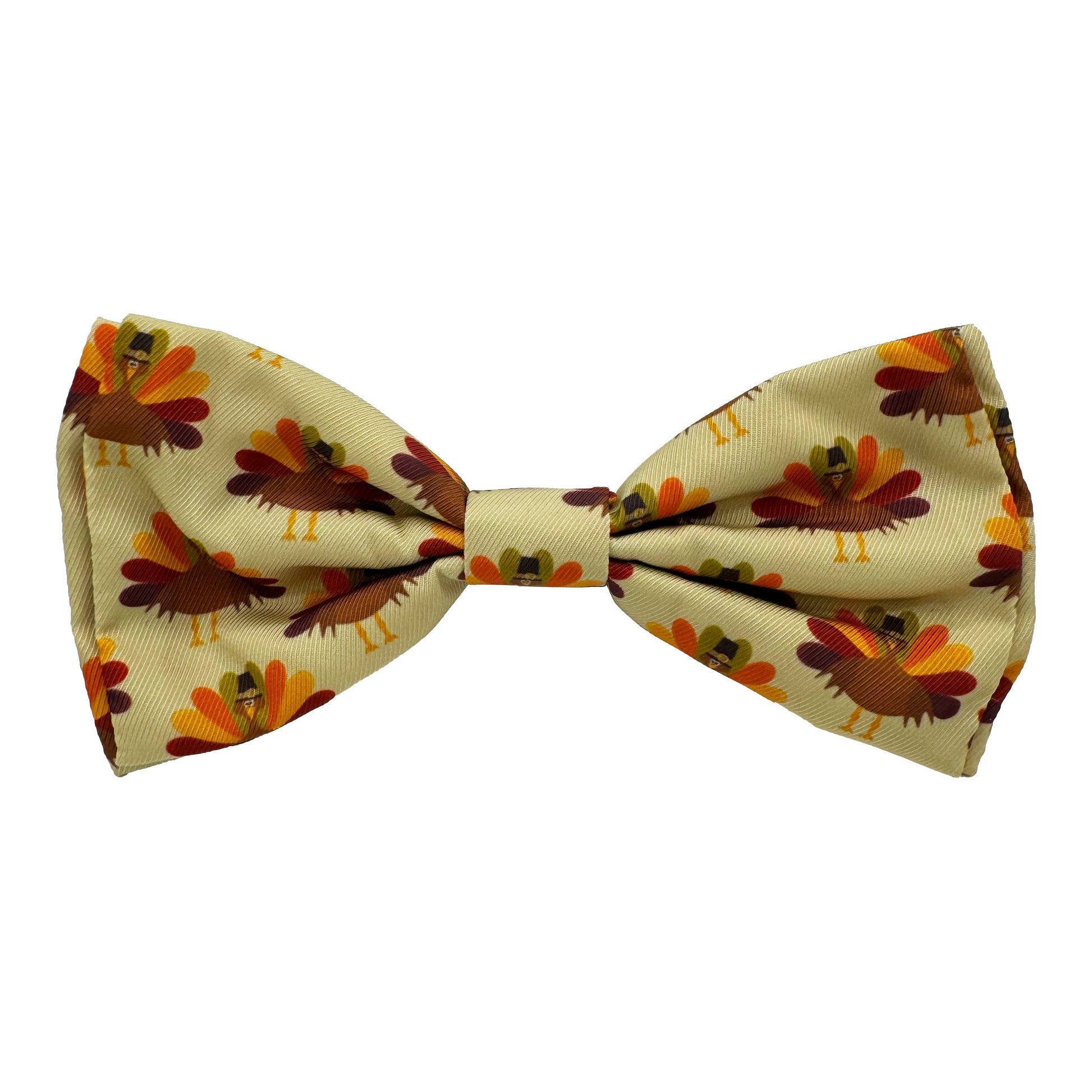 Get your pet ready for the holiday season with our What Me Worry Turkey Bow Tie! Featuring neutral hues and a festive turkey print, this charming accessory adds a touch of Thanksgiving cheer to any pet's ensemble.